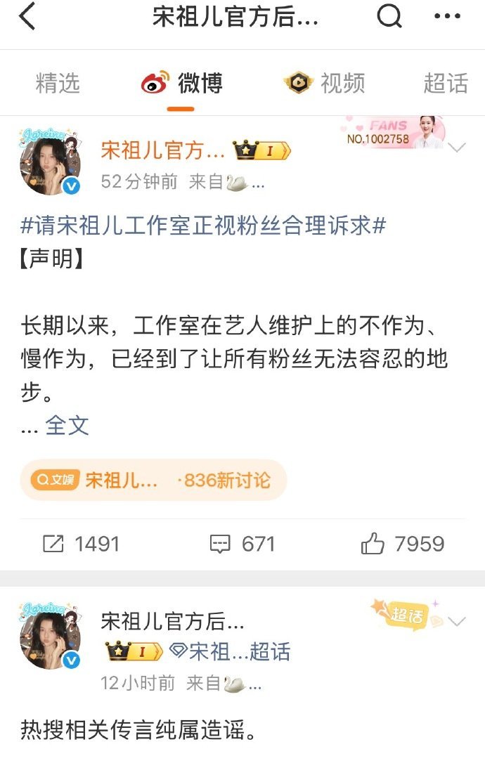 宋祖儿工作室 慢作为散粉麻辣了工作室几百条 后援会先辟谣后罢工,都这程度了还不出