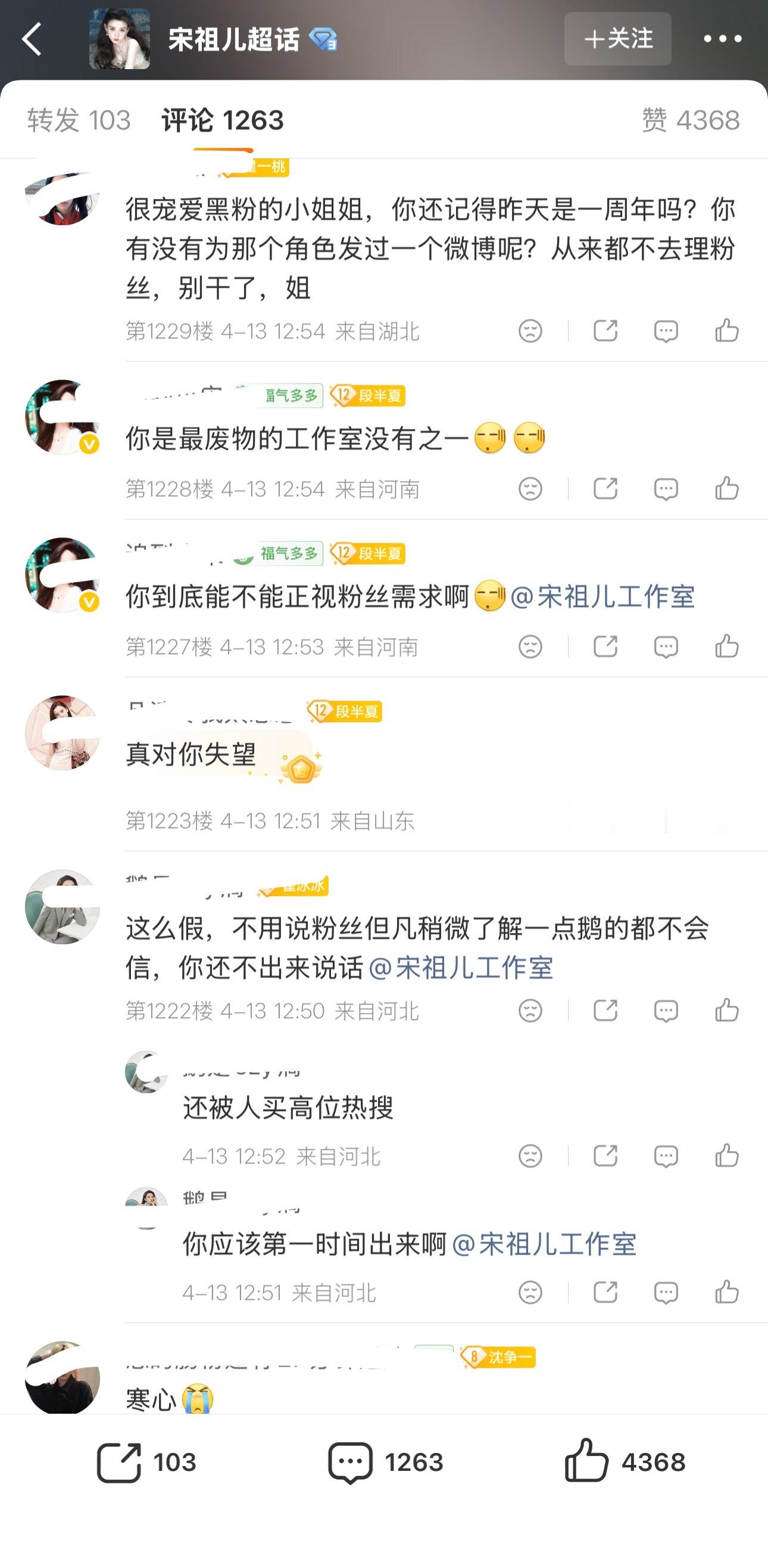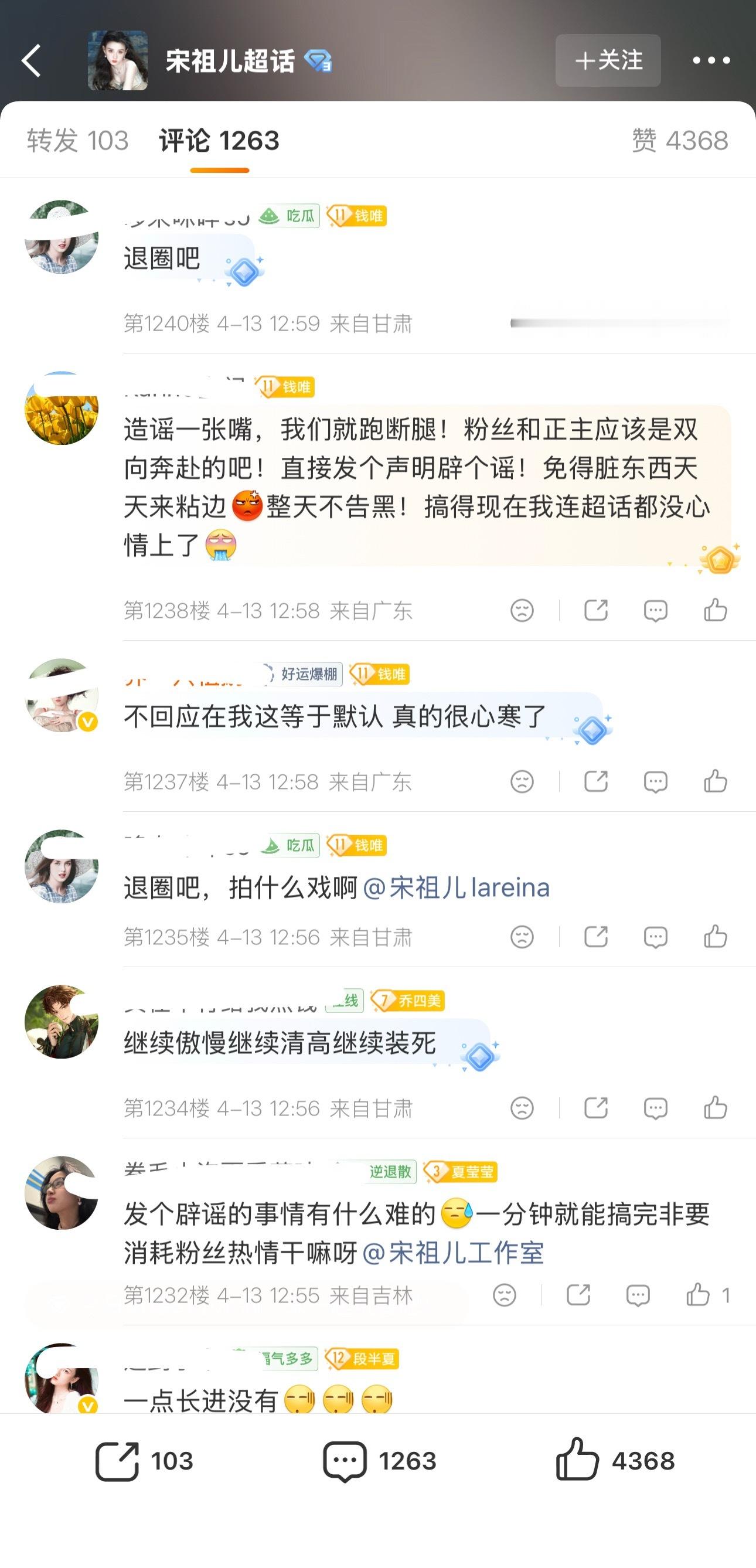宋祖儿工作室 慢作为散粉麻辣了工作室几百条 后援会先辟谣后罢工,都这程度了还不出来辟谣?