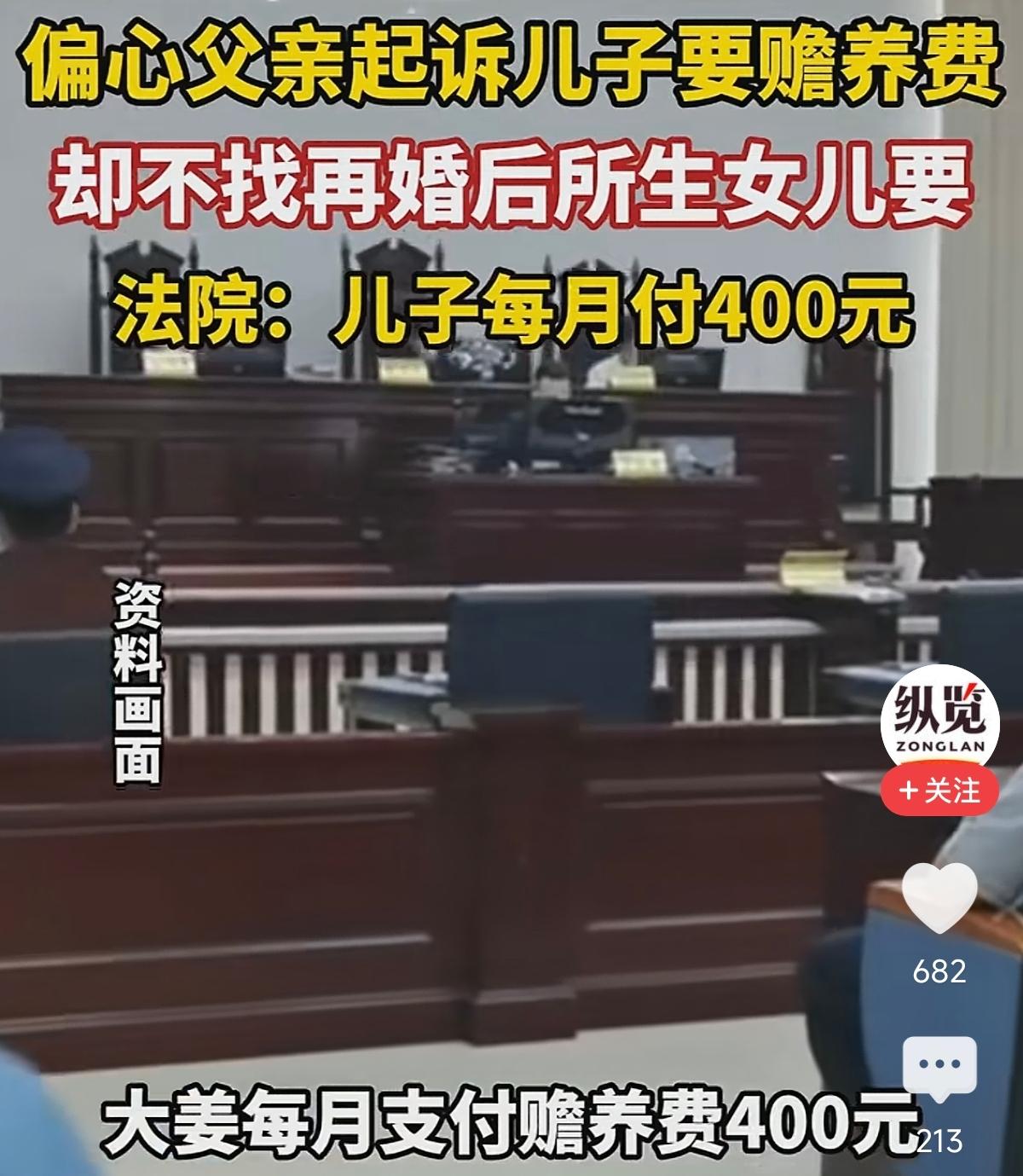 最后法院判下来,没按老头要求的30%来,而是结合儿子的收入、家庭开支,以及老头的实际需求,让儿子每月给他400元