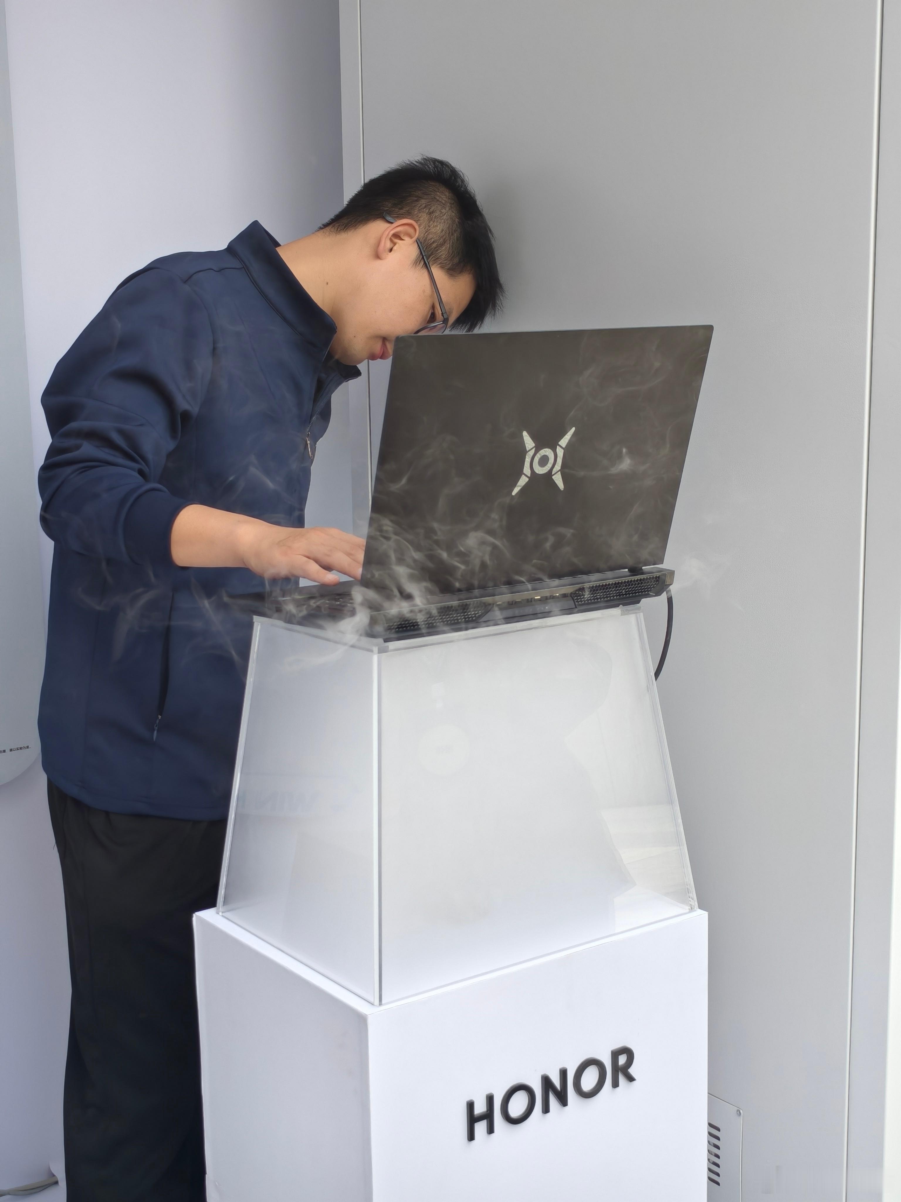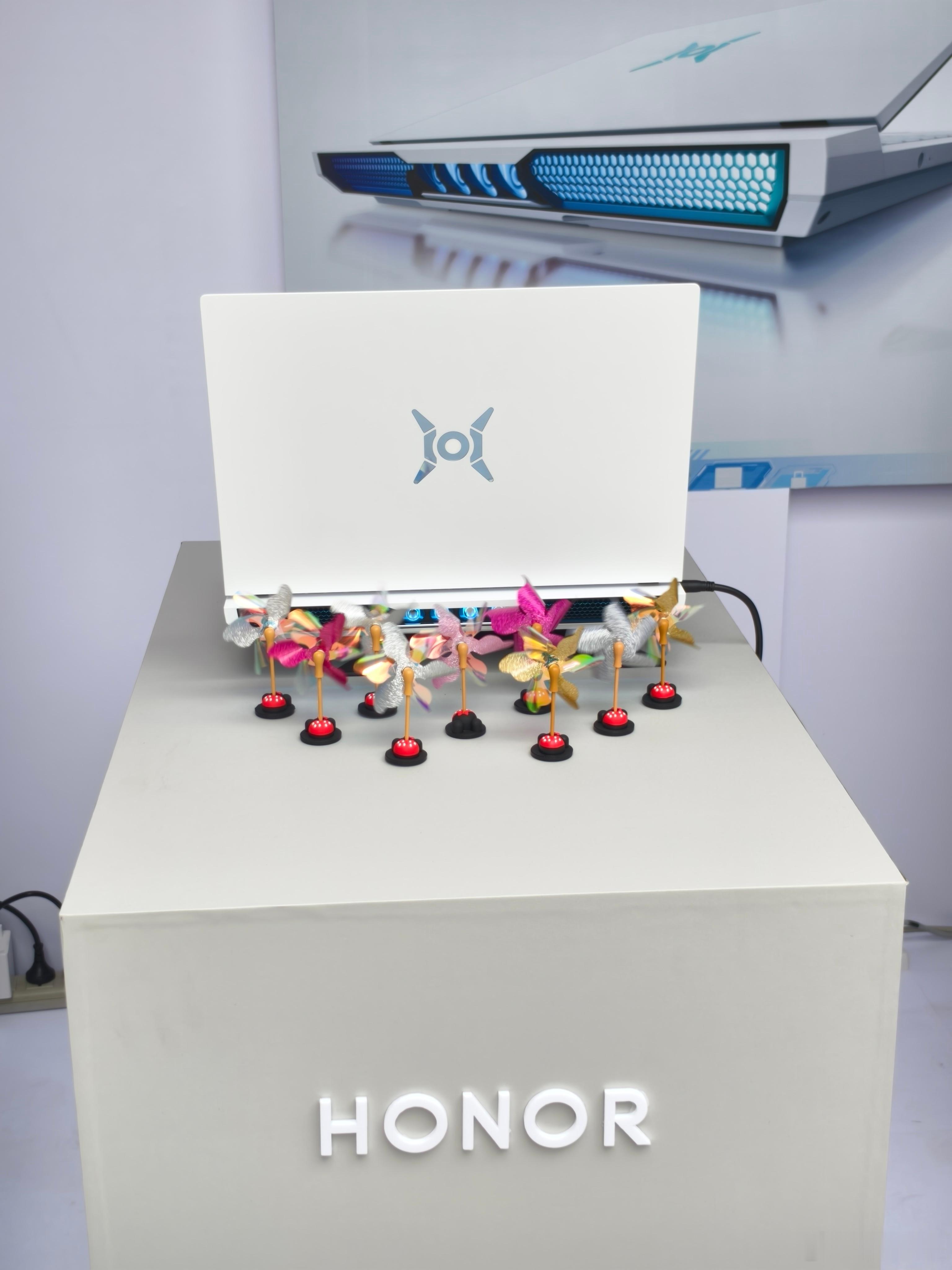 荣耀WIN游戏本首发东风尾喷散热引擎 这次荣耀WIN游戏本比较有特色的是搭载了4个高性能自研轴流风扇,配合2个强大的离心主风扇,将整机风量较传统内吹方案提升10%,提升综合整机功耗收益20W,在5070Ti显卡配置下可实现至高270W满血功率释放。游戏党狂喜!