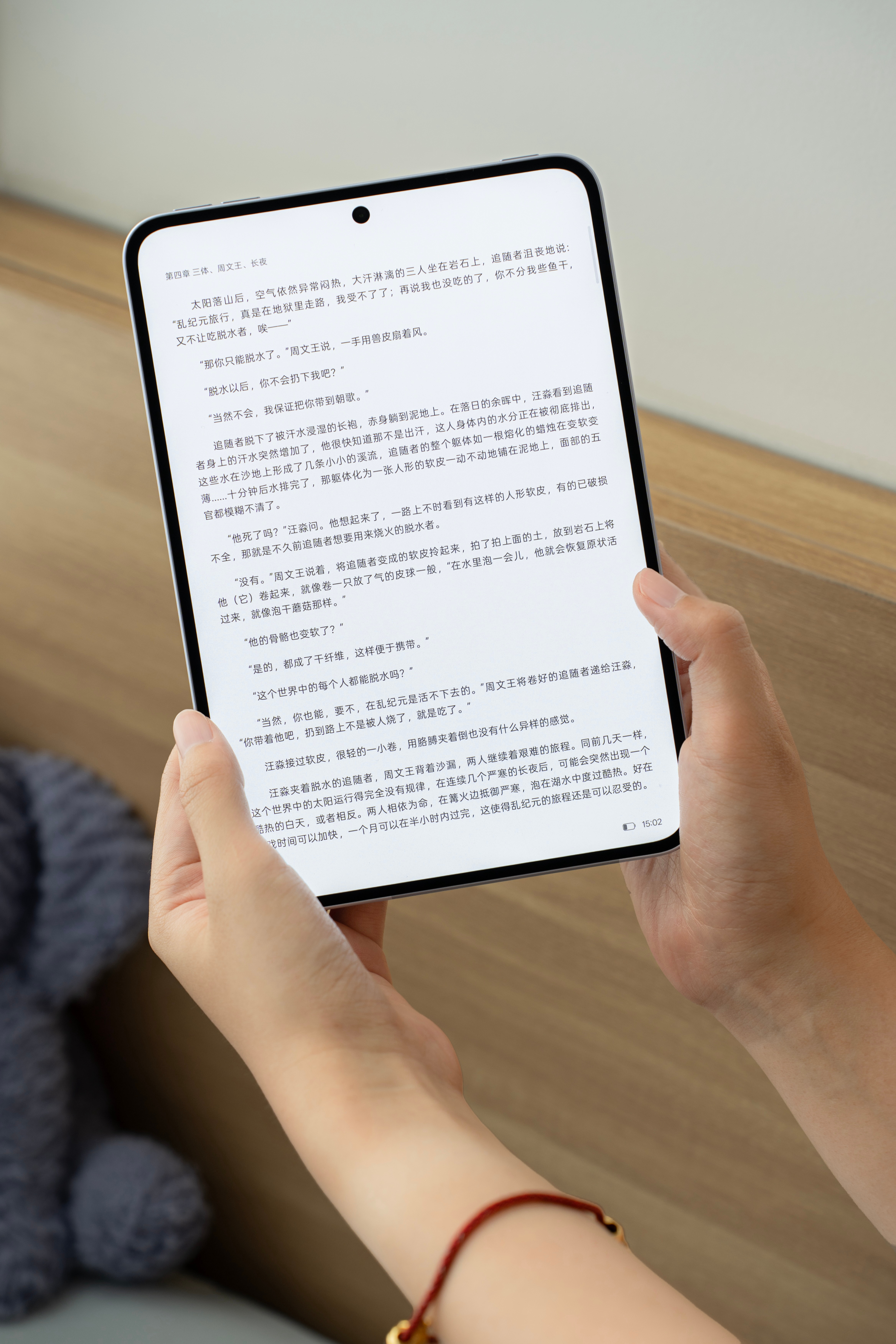 「莫奈紫」,机身采用阳极氧化喷砂CMF工艺,摸上去会有磨砂的感觉。在光线下会泛着一种淡淡的金属光泽,像裹了一层细绒。8.8英寸屏幕配上2.99mm的边框,视觉效果很通透,机身只有5.39mm厚,对比iPad mini不仅更薄,还有更窄的边框,整体手感非常舒服。
