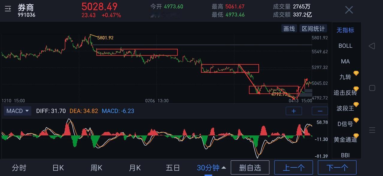 券商板块,明天面临变盘窗口期。 券商短期又行至十字路口。进则上演逼空