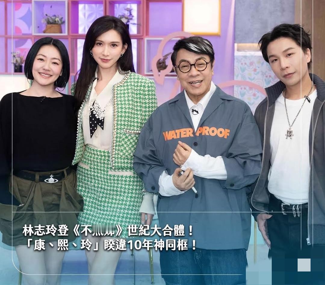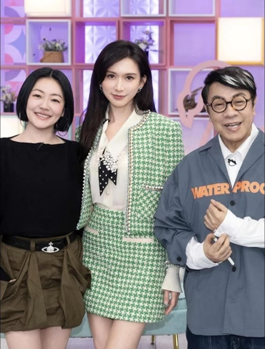 林志玲穿了一身绿色的格子套装,个子好高啊,明显比小S高出一大截,蔡康永也过来了。
