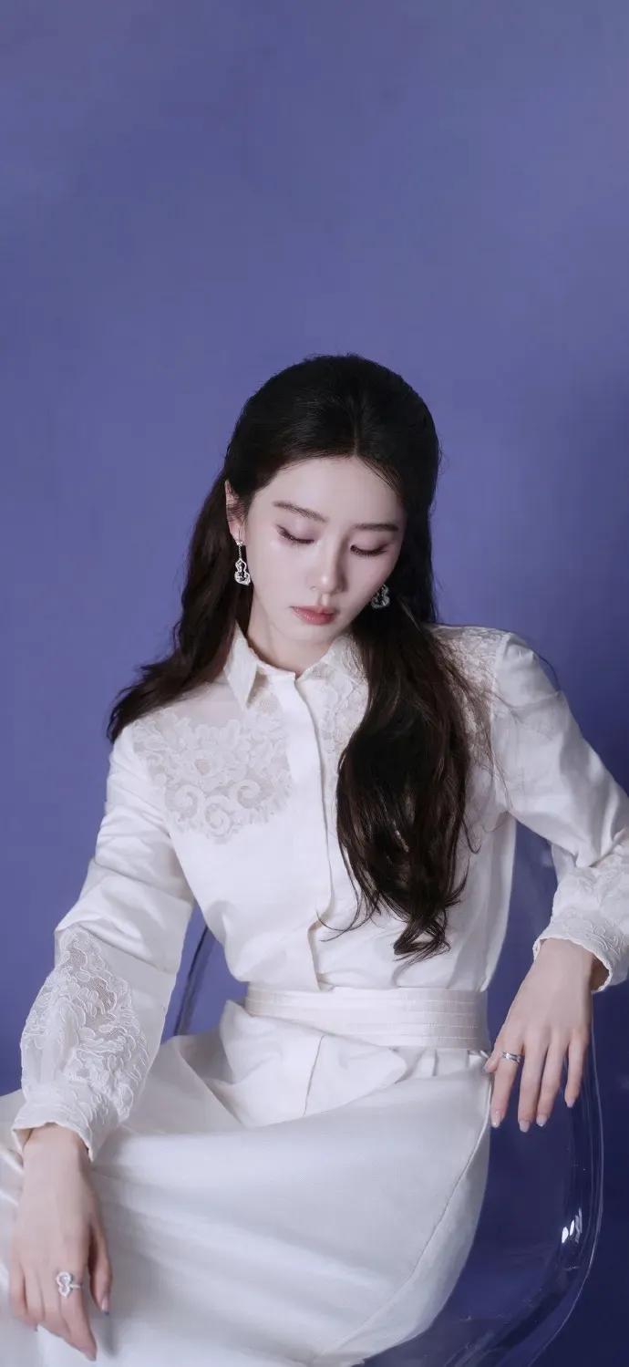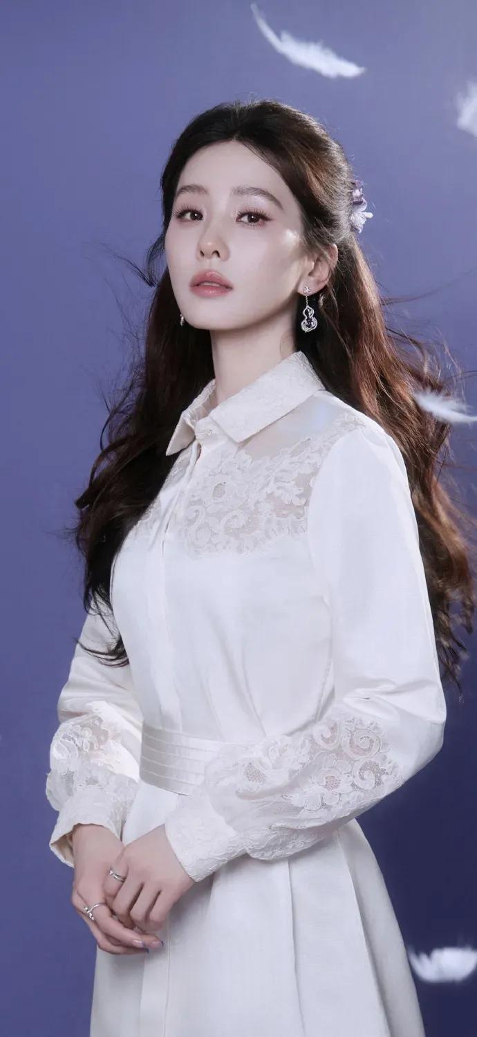 美女壁纸~一袭白色蕾丝衬衫裙,尽显刘诗诗的温婉雅致。精致蕾丝点缀领口与袖口,收腰设计勾勒出窈窕身形,紫调背景衬得肌肤胜雪,纷飞的羽毛更添灵动仙气
