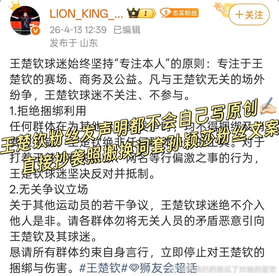 王楚钦粉丝这是在干什么,和孙颖莎粉丝写的一模一样么🙉🙉🙉🙉