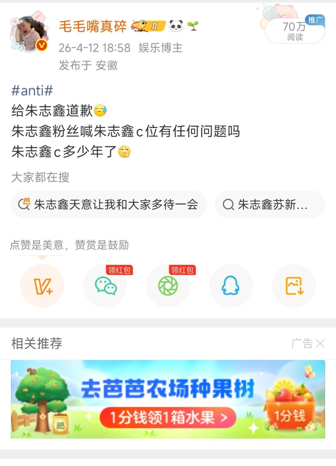 一堆人投诉实话有啥用呢,朱志鑫就是c位阿轻轻松松70万阅读