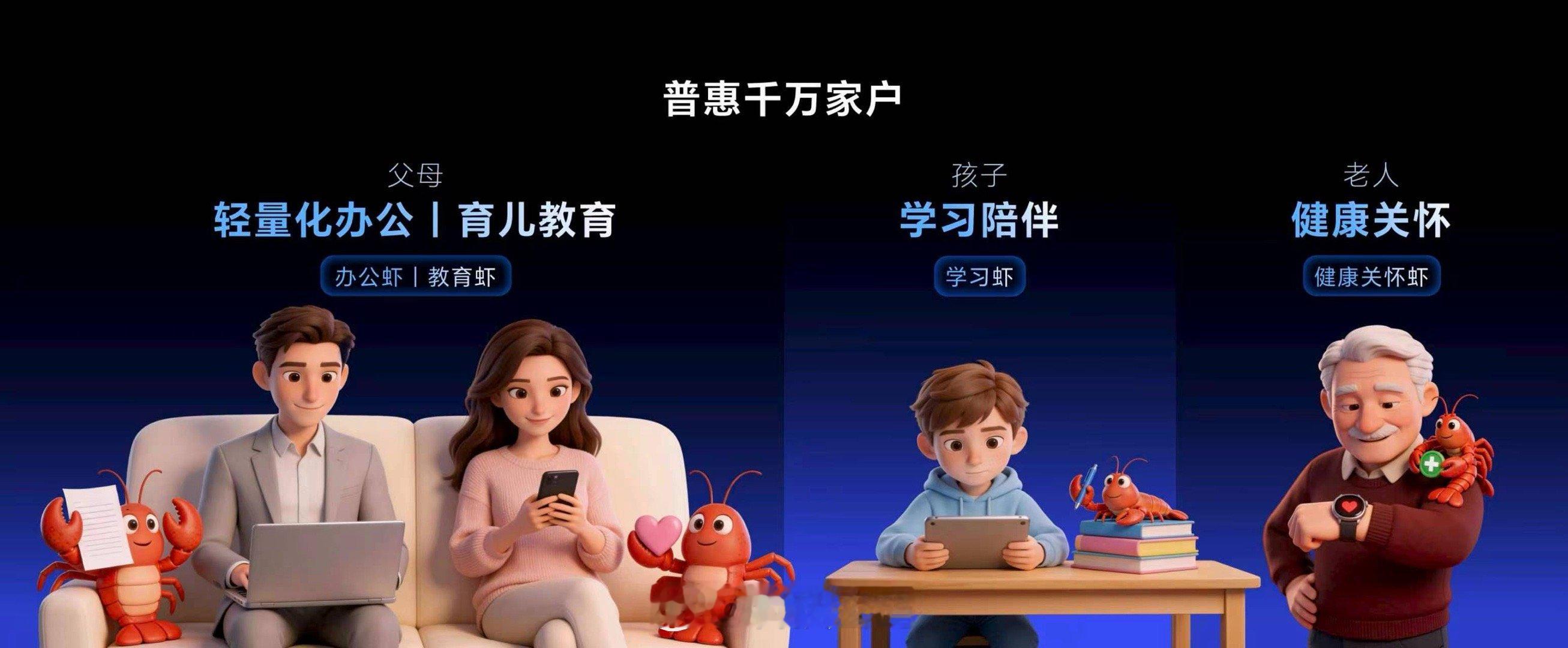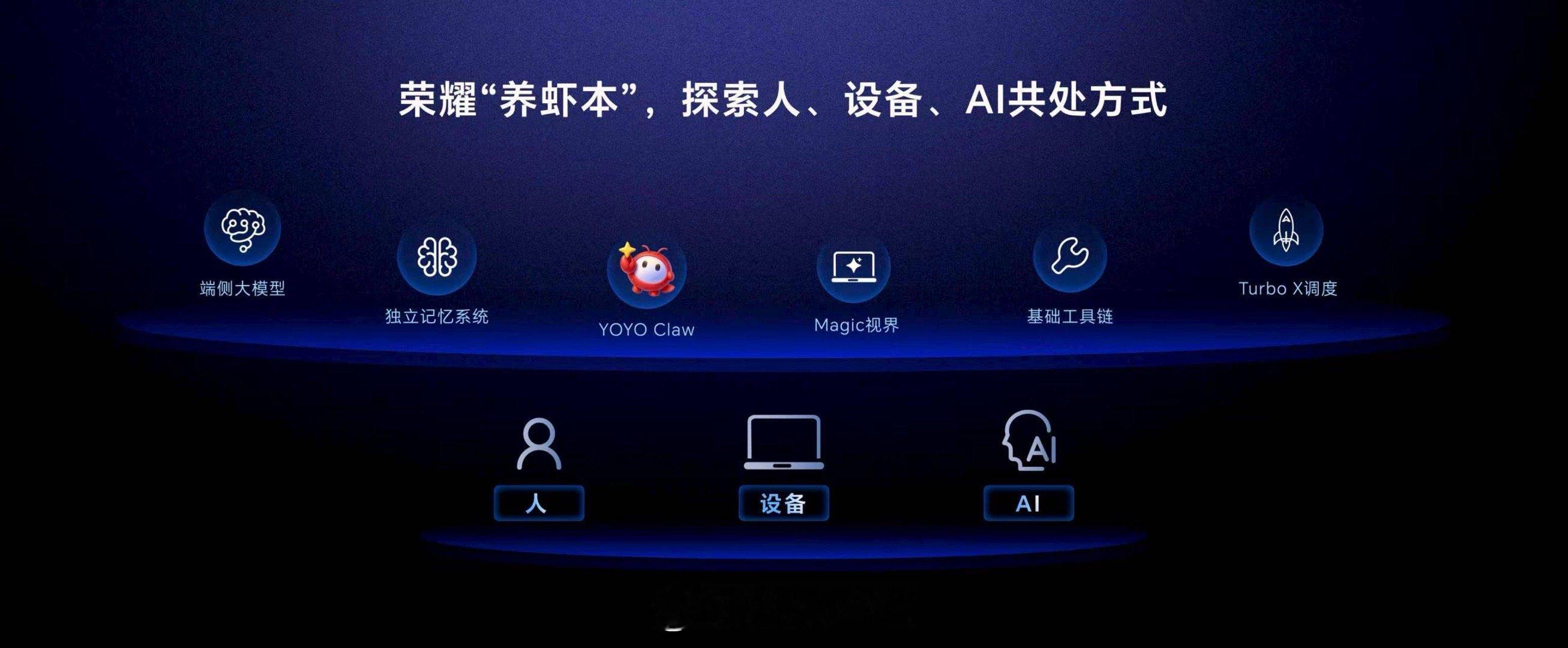 荣耀YOYO Claw技术不仅是个人的数字助理,更带来了革命性的“多端一体、一虾多吃”的体验。家里只需拥有一台预制YOYO Claw的荣耀“养虾本”,所有家庭成员都能通过终端设备远程与这些龙虾互动、操控,且家庭相关的记忆数据均存储在该PC中,实现全家联动。同时可以做到一人一虾专属独立,孩子作业一键打印;老人定时提醒服药等,真正实现学习、生活、健康一虾通吃。这不仅是AI能力的共享,更是荣耀“近场到远场、设备互联到能力共享”的重大升级。 荣耀养虾本一端养虾全家共享