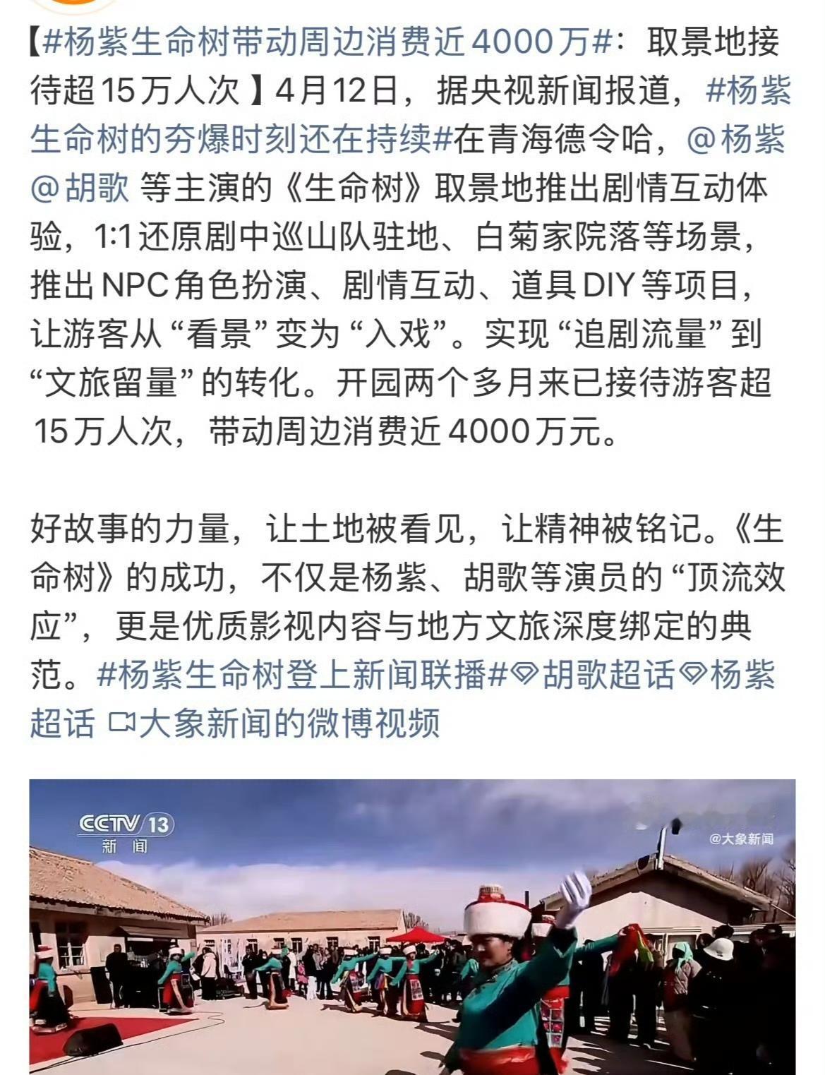 杨紫胡歌不愧是有流量的实力派,《生命树》还在继续发力,带动取景地周边消费近4000万!