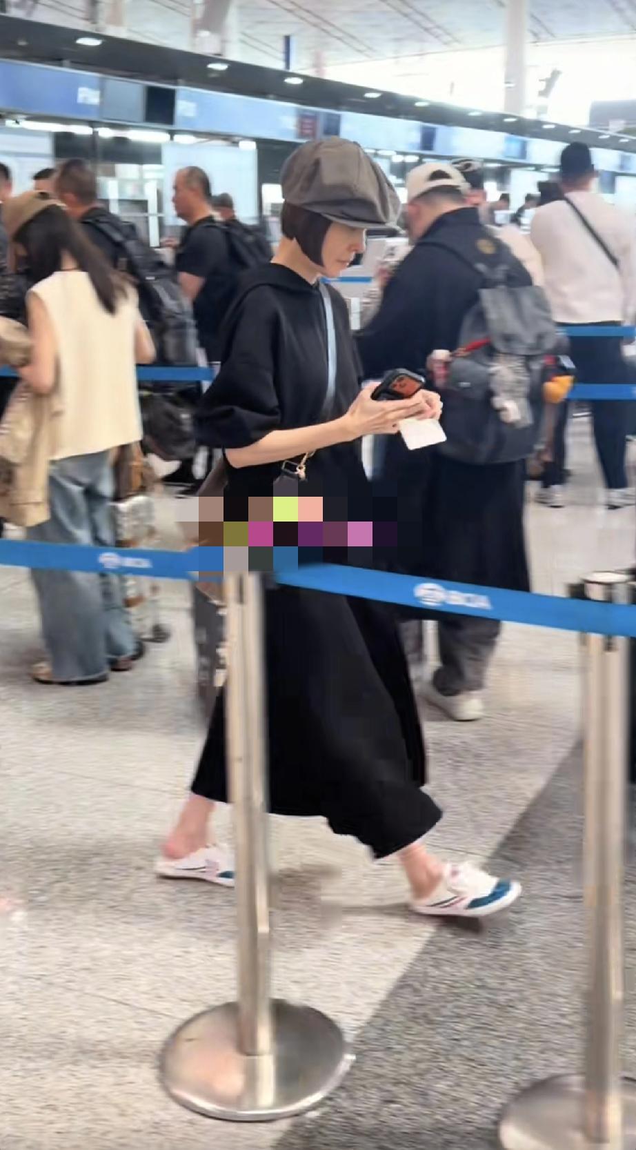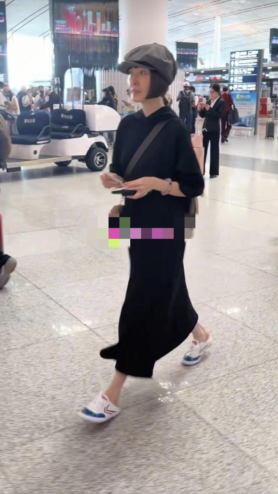 鲁豫头好大,她穿一身黑色的休闲裙子,戴着礼帽穿无跟的球鞋,去澳门参加国际喜剧节,这一身打扮在机场竟然没被认出来,很少人注意到她。