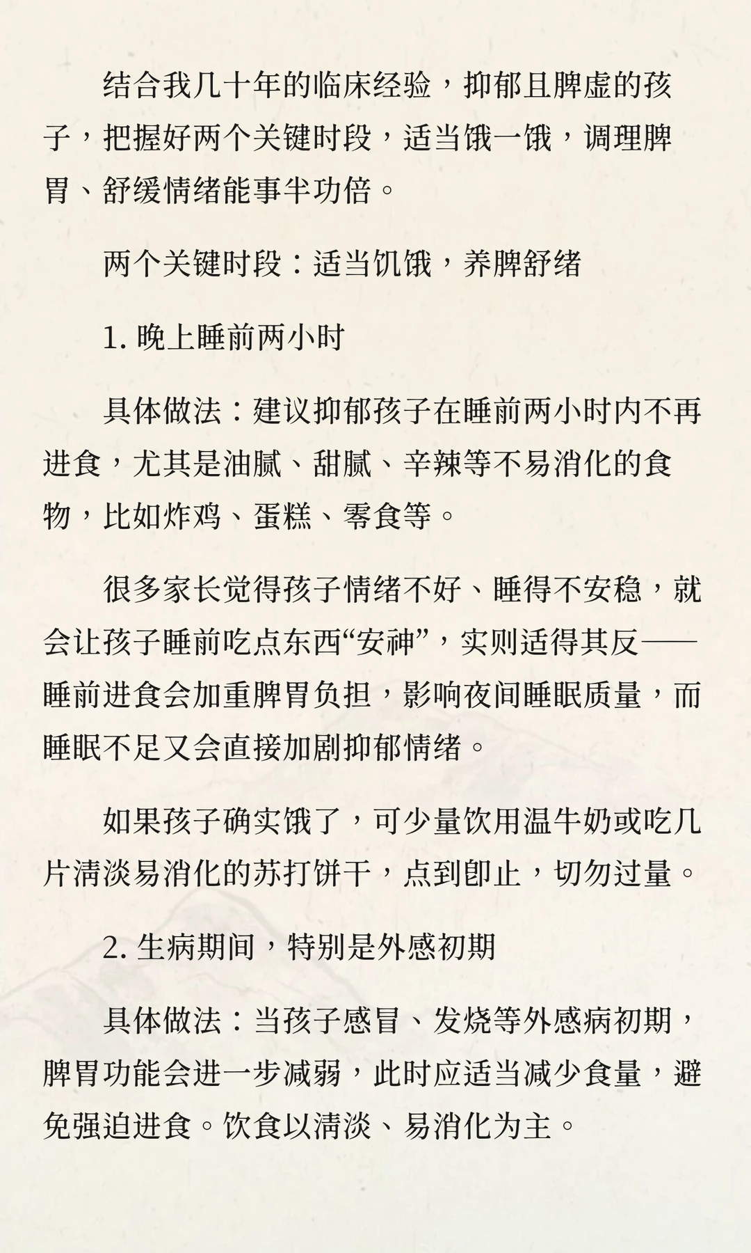 脾虚的抑郁孩子,这两个“时段”要饿一饿