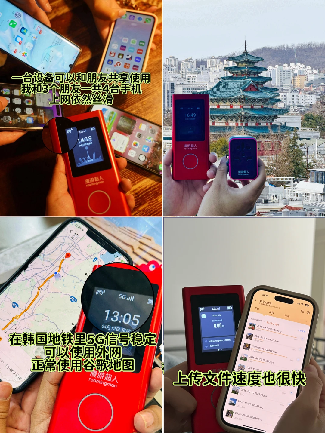 这次和朋友一起去首尔玩,在🍑租的漫游超人,非常适合多人自由行,能5个人共用一台