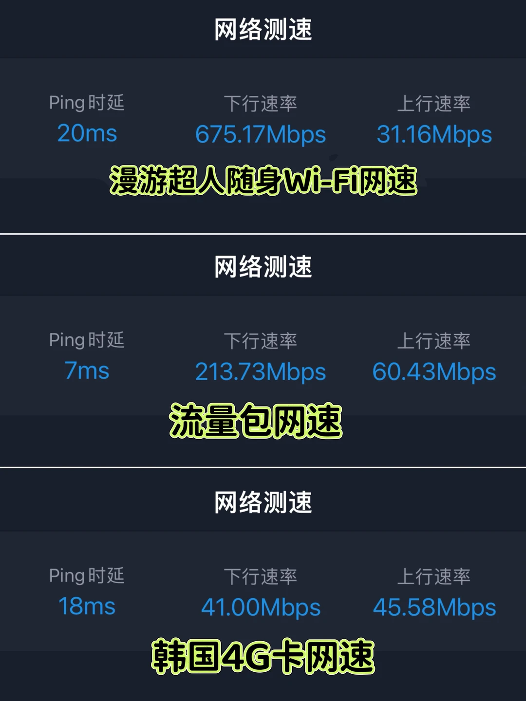 出国旅游查攻略,查路线、偶尔要办公等都需要一个靠谱的网,我这次去韩国实测,不玩游戏不刷剧都一天用掉了我5个GB的流量,每天1GB那种卡根本不够用!漫游超人不限流量,用的越多越划算