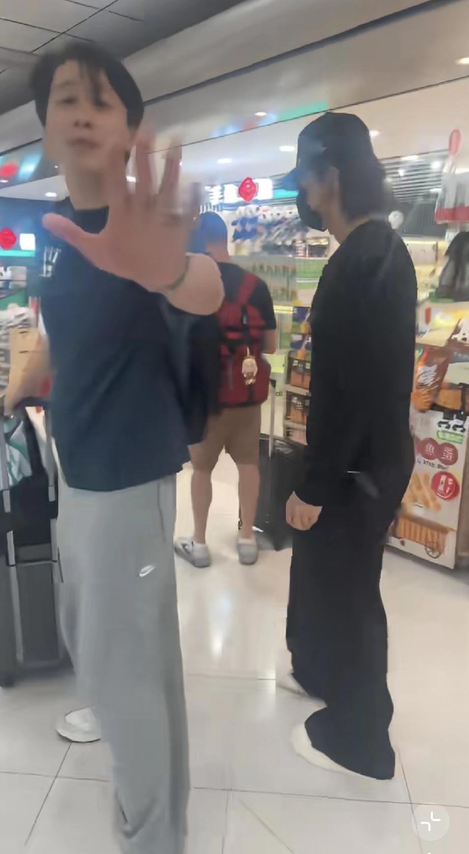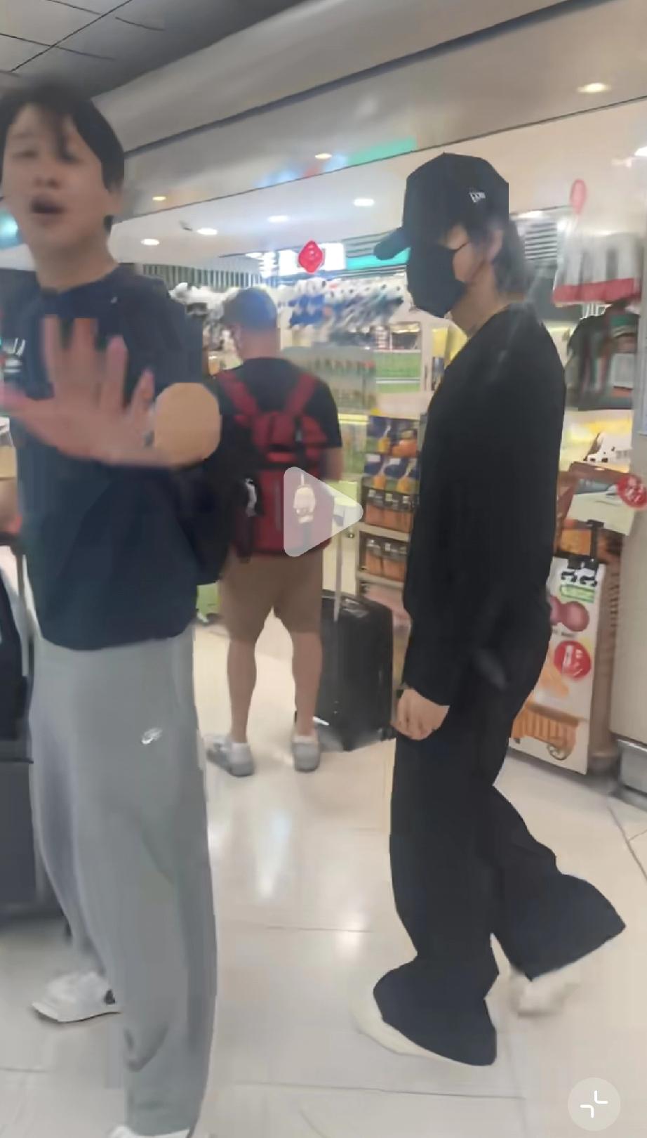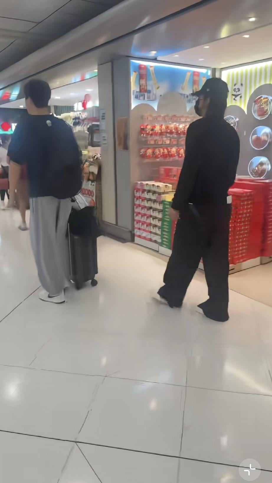 4月13日,有网友在香港机场小店旁边偶遇到了正在闲逛的言承旭,他不是一个人,旁边跟着一位穿蓝色T恤的男子,据说是他的保镖。