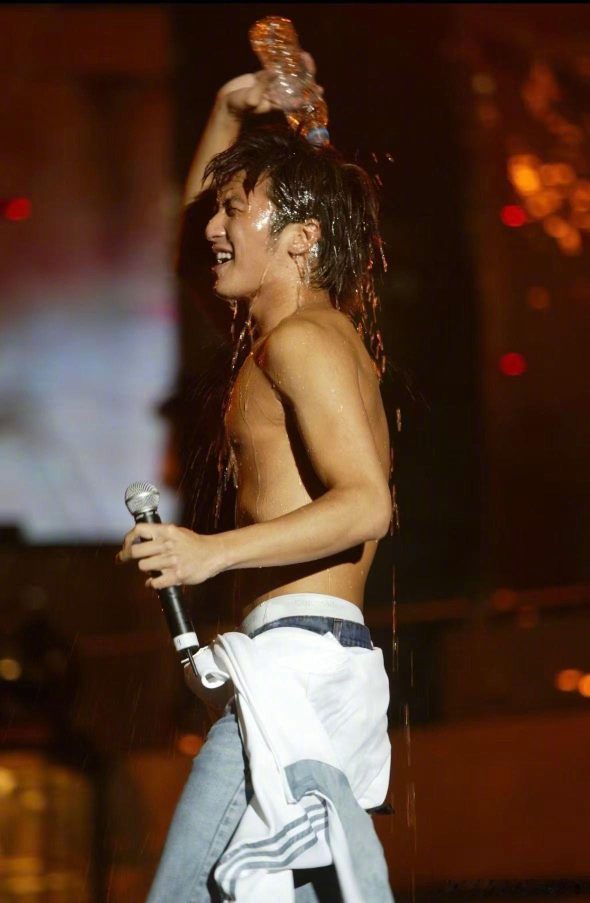 谢霆锋浇头梦回千禧年 舞台上的谢霆锋永远摇滚永远青春,武汉演唱会唱到《开放日》直接矿泉水浇头,湿发造型又野又帅,谁看了不说一句“爷青回”🆒