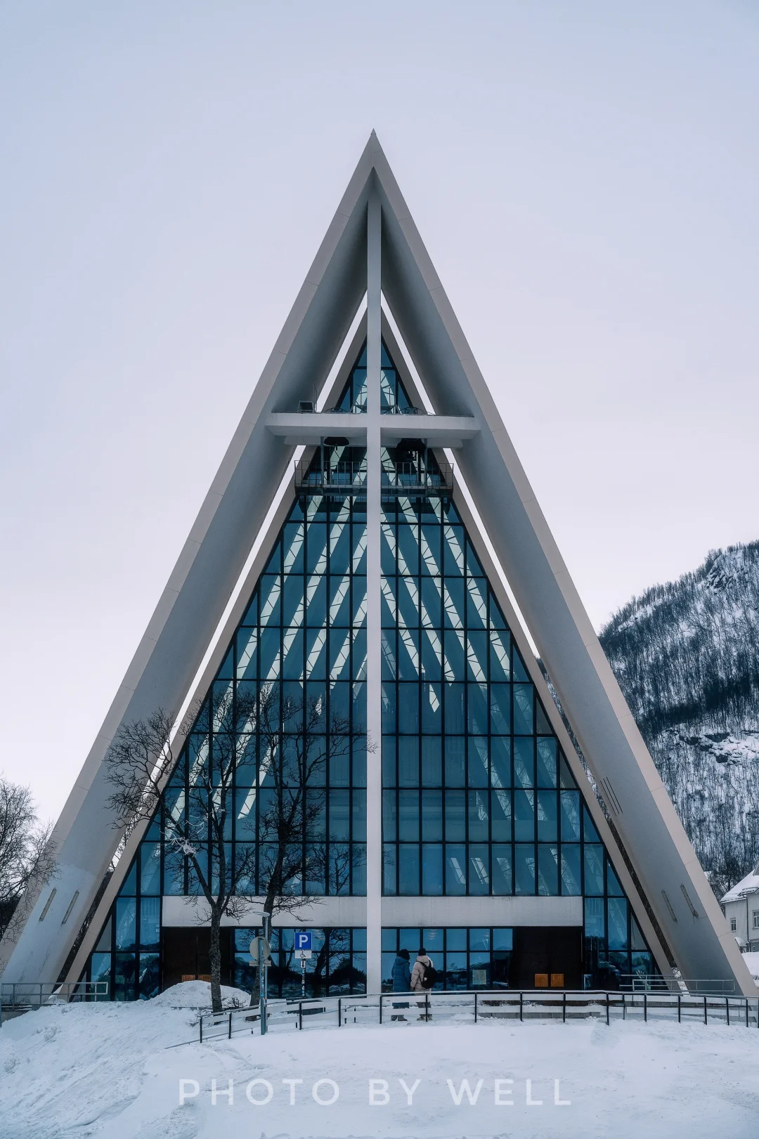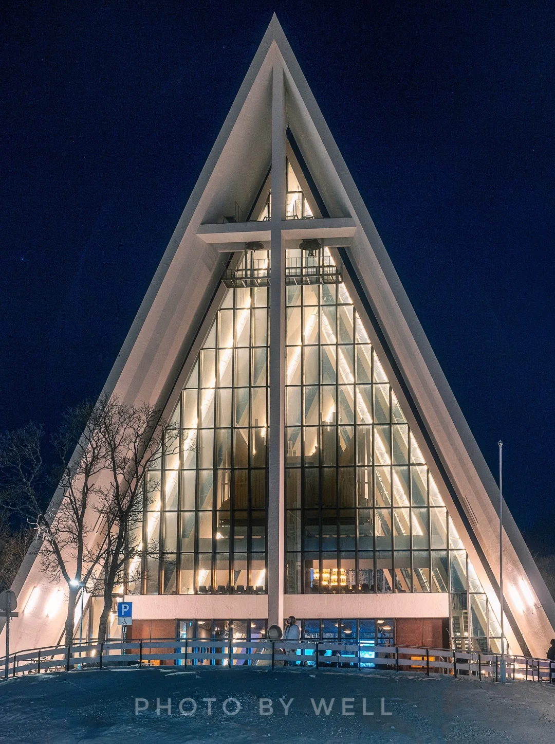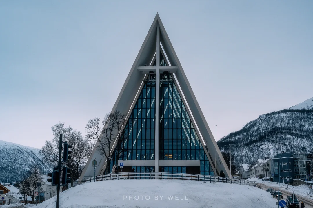 挪威特罗姆瑟的北极大教堂(Arctic Cathedral)被誉为“北极之门”,这个地标性的建筑并非古迹,是现代建筑的结晶。教堂由建筑师扬·英格·霍维格设计,灵感源自挪威北部的冰山与极光,于1965年竣工。它最初是为应对战后人口增长而建的福音派路德教区礼拜堂,如今已成为特罗姆瑟的城市名片。这组片展示了不同位置不同时间拍摄的北极大教堂。