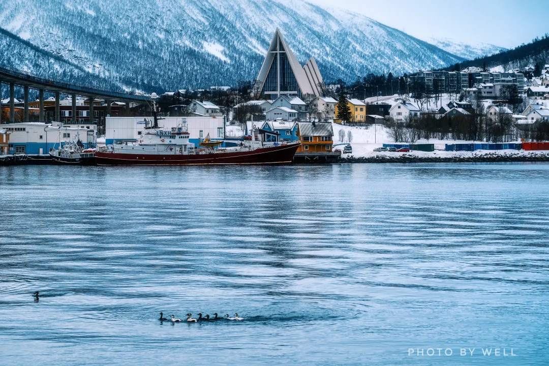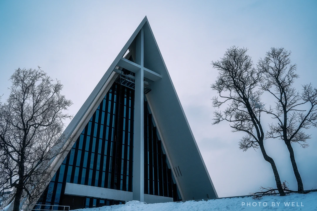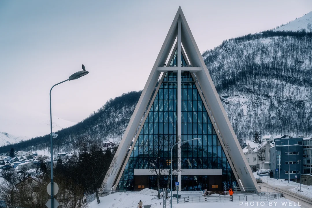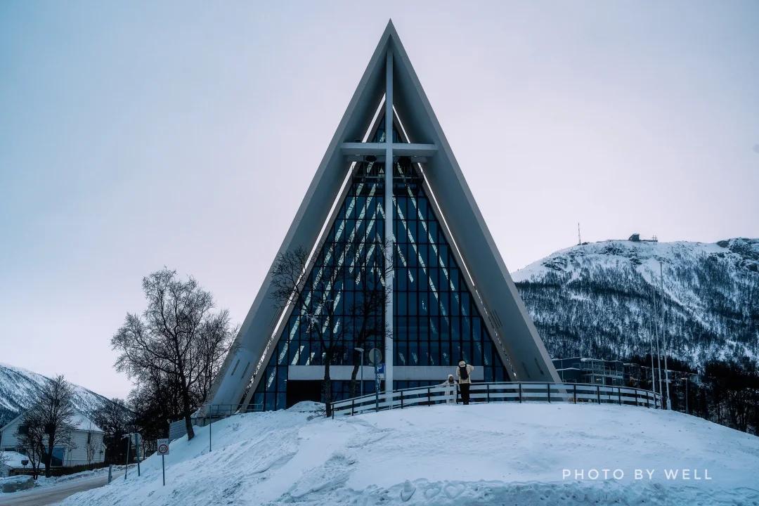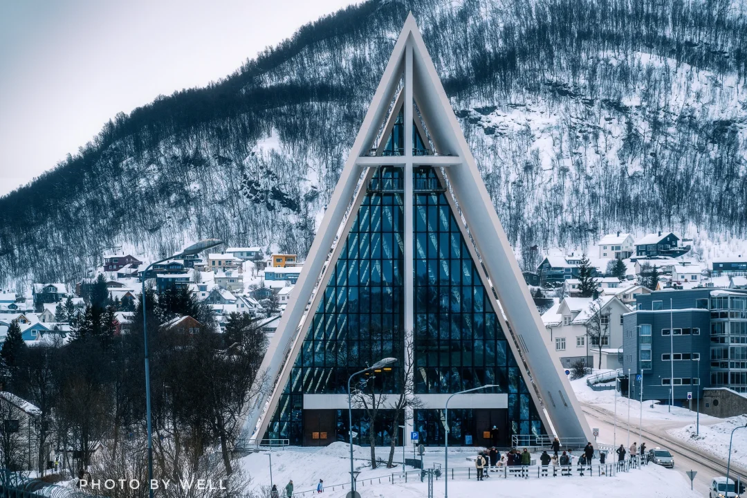 挪威特罗姆瑟的北极大教堂(Arctic Cathedral)被誉为“北极之门”,这个地标性的建筑并非古迹,是现代建筑的结晶。教堂由建筑师扬·英格·霍维格设计,灵感源自挪威北部的冰山与极光,于1965年竣工。它最初是为应对战后人口增长而建的福音派路德教区礼拜堂,如今已成为特罗姆瑟的城市名片。这组片展示了不同位置不同时间拍摄的北极大教堂。