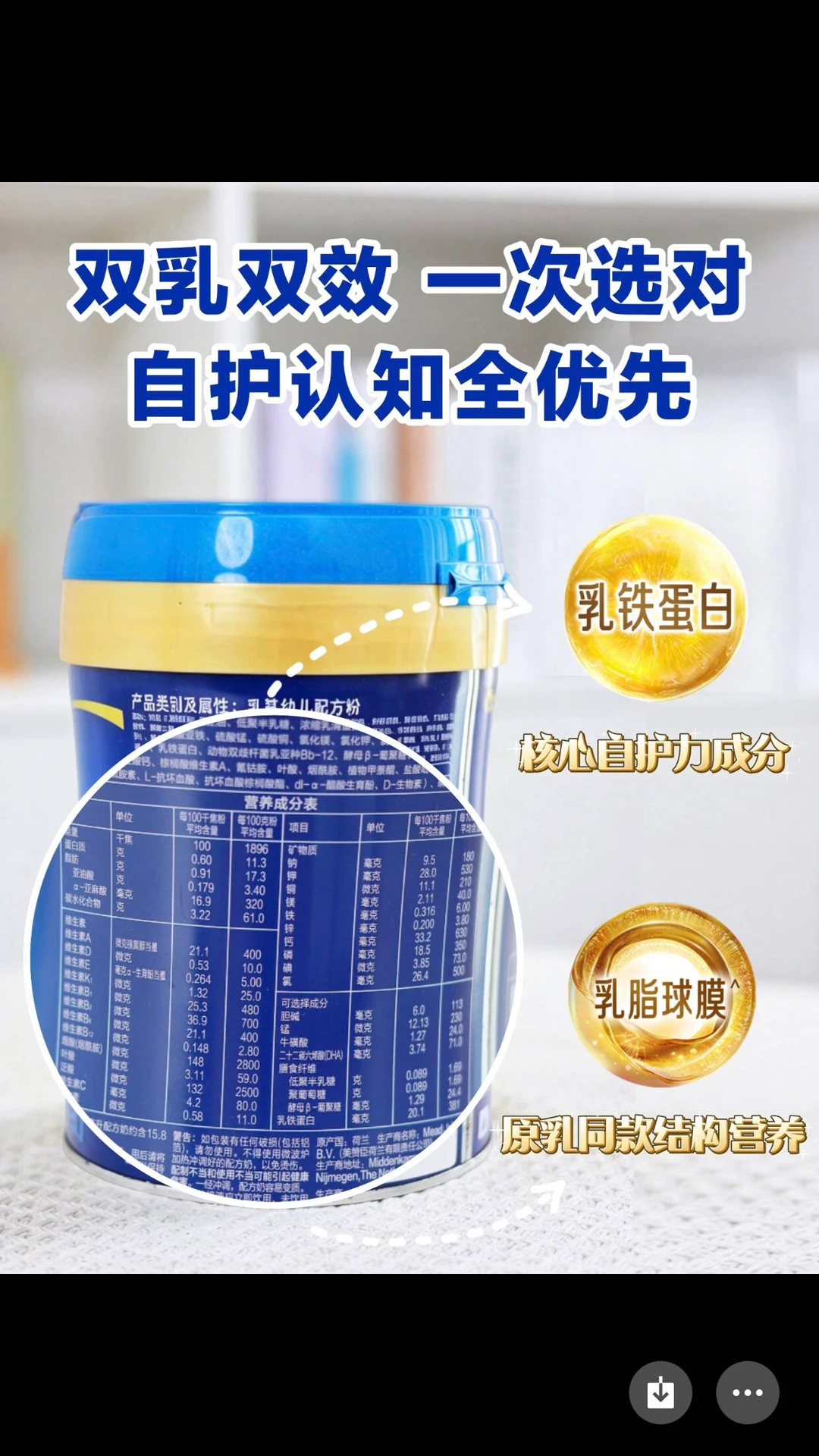 💡再说结构营养,蓝臻还搭配带着700+活性营养的乳脂球膜,像一台营养专列,把营养精准送抵宝宝肚肚,和乳铁蛋白搭着伙儿,一边助力吸收营养,一边巩固自护力,提升认知力,给宝宝打好了“体智双优”好底子💪