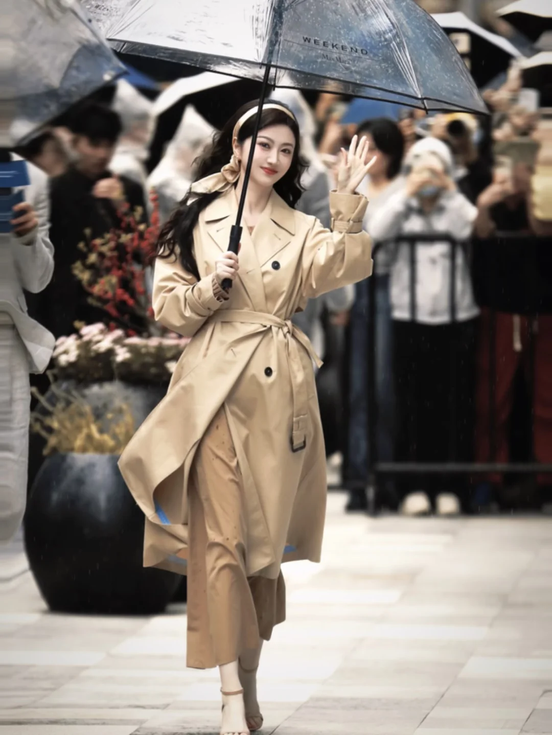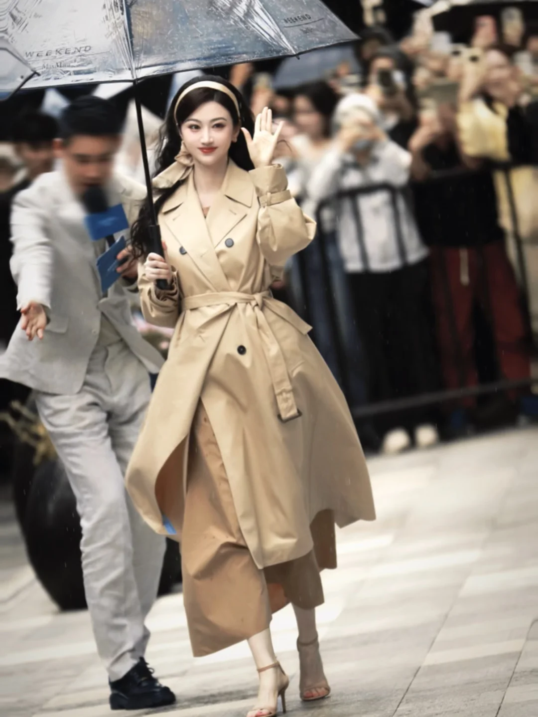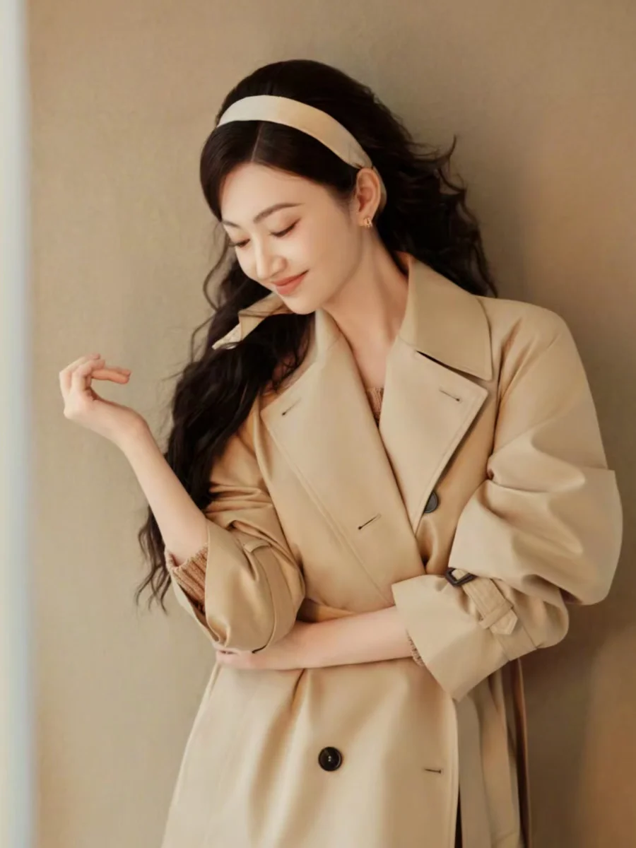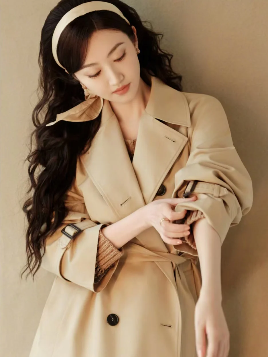 景甜风衣+大波浪,完全沪上美人来的