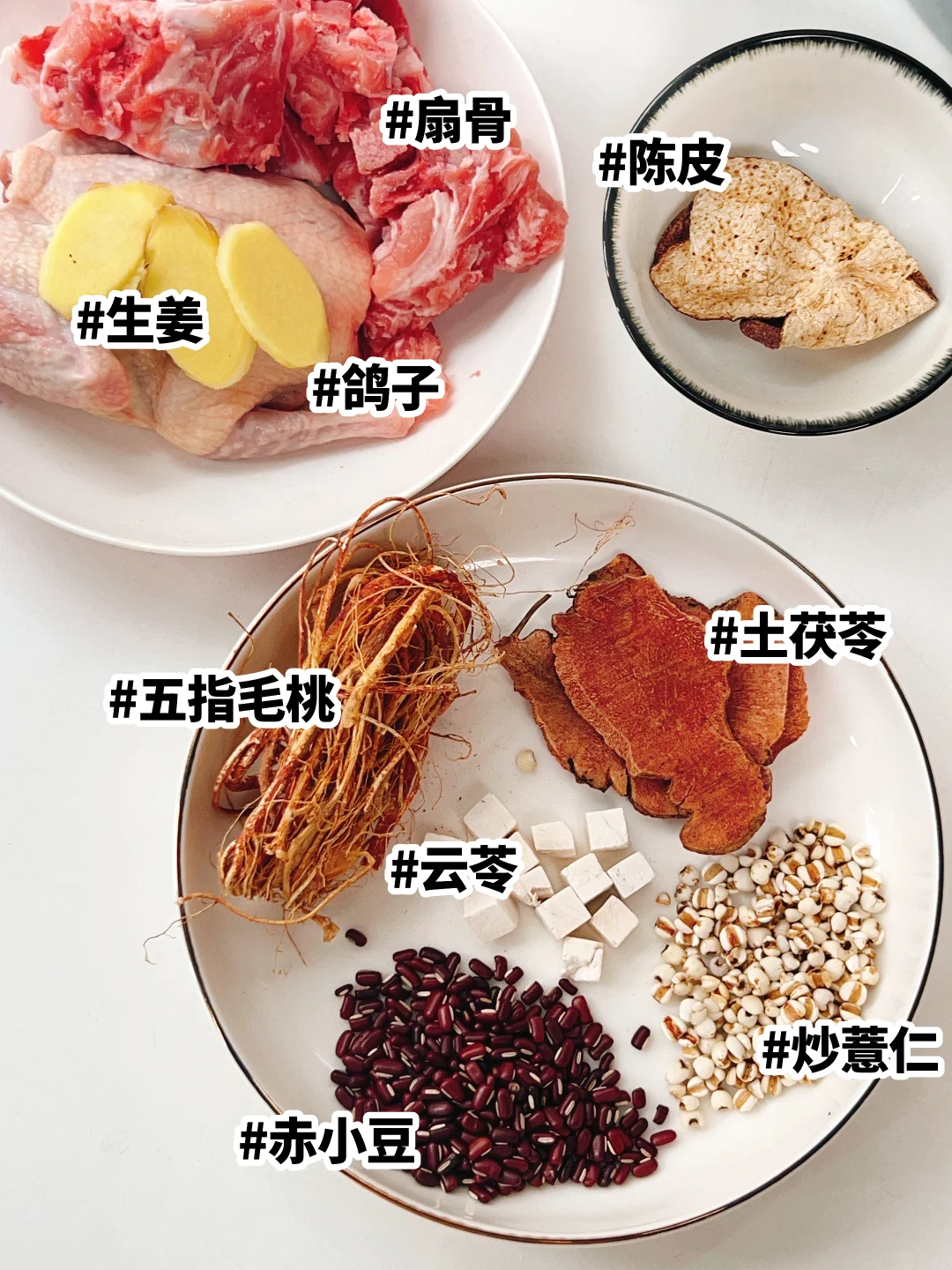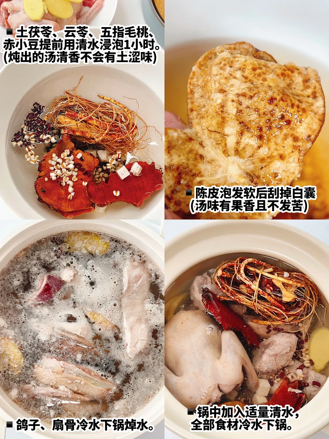 ▪️土茯苓、云苓、五指毛桃、赤小豆提前用清水浸泡1小时。(炖出的汤清香不会有土涩味)