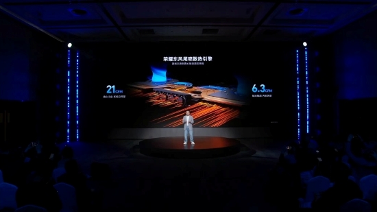 作为本次沟通会的核心产品,荣耀win游戏本直击传统游戏本散热不足、噪音偏大、性能释放受限等行业顽疾,带来颠覆性散热方案。该产品业界首发“2离心主扇+4轴流辅扇”东风尾喷散热引擎,在21mm超薄机身内搭建高效散热架构,彻底打破传统内吹散热局限。荣耀实现风扇马达小型化突破,马达尺寸缩至10mm,转速稳定超20000rpm;同时将桌面电竞级120×120×20mm轴流风扇压缩至21×21×7mm,配合全新散热引擎,整机风量较传统方案提升10%,综合整机功耗收益达20w。在rtx5070ti显卡配置下,该游戏本可实现至高270w满血功率释放,保障大型3a游戏长时间稳定运行,告别卡顿与发烫问题。