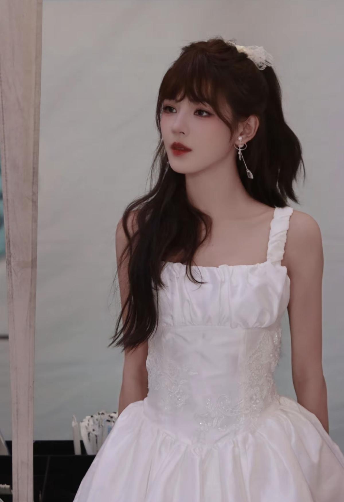 张予曦以繁花为裙,赴一场春日的浪漫之约。粉雾纱裙缀满立体花饰,层叠裙摆如云似雾