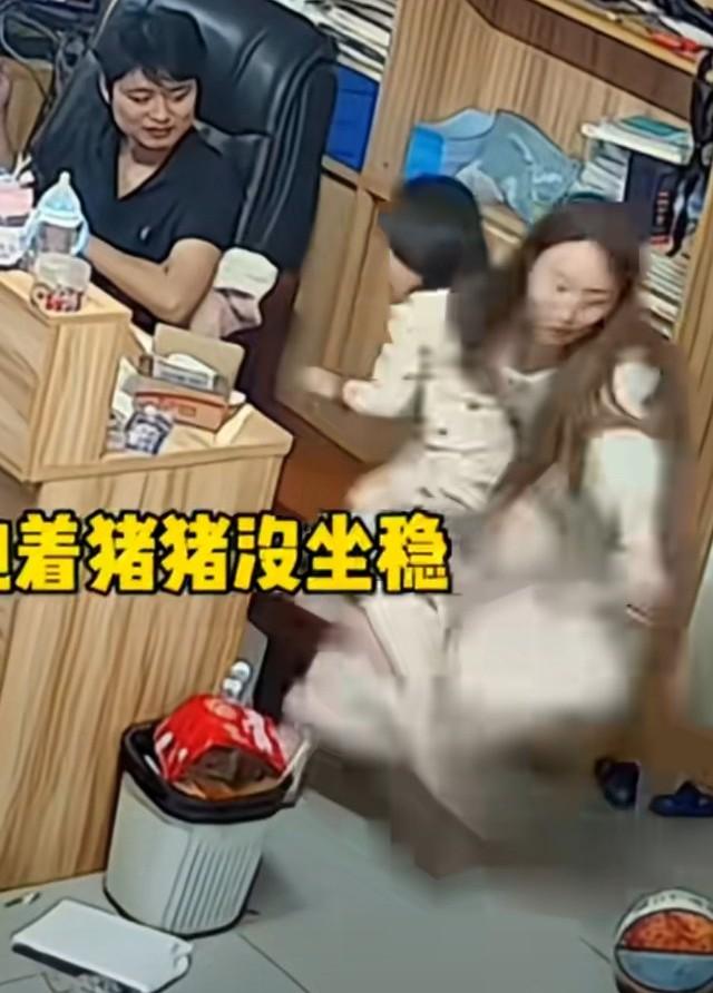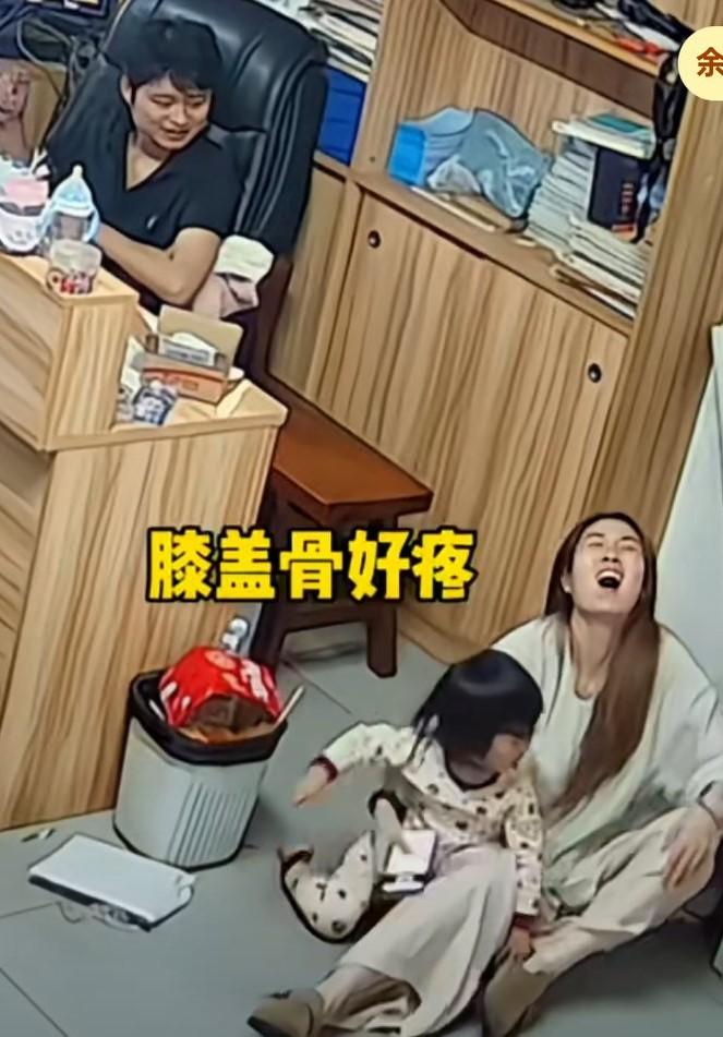 妈妈抱着女儿没坐稳摔倒在地,妈妈摔倒的瞬间,