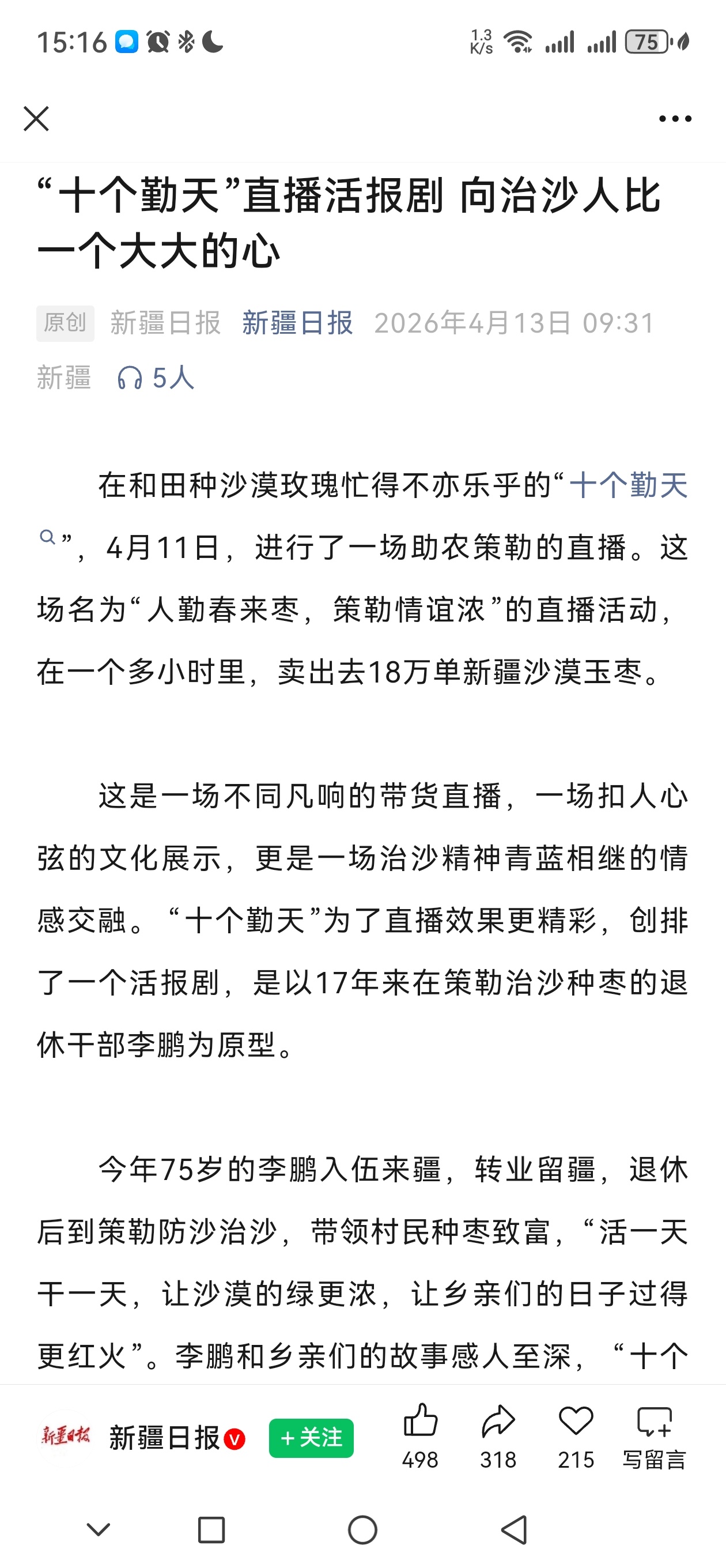 十个勤天种地吧十个勤天直播1小时卖出18万单红枣与有荣焉面对当地300吨红枣滞销的困境,十个勤天助农直播,仅用1小时,售出18万单,清空90吨库存