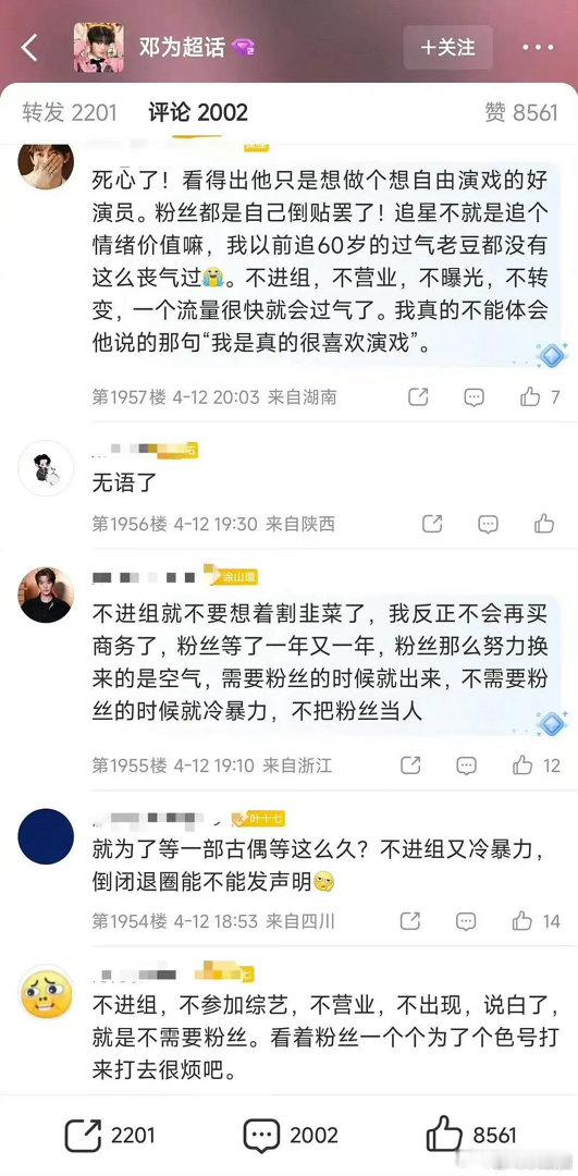 这是怎么回事?邓为粉丝疑似因为百妖谱新瓜人选而崩盘,官方对接和经纪人底下都是回踩