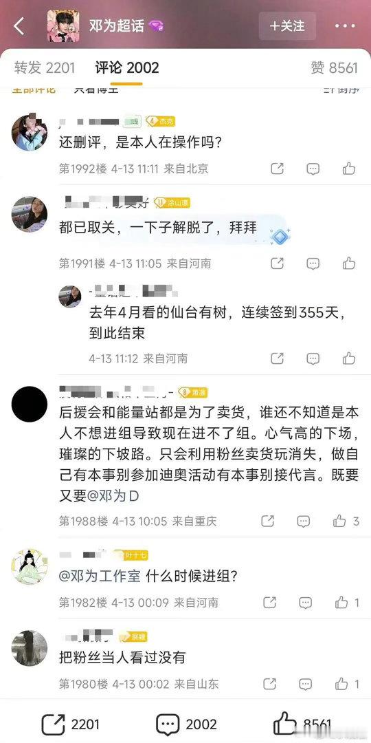 这是怎么回事?邓为粉丝疑似因为百妖谱新瓜人选而崩盘,官方对接和经纪人底下都是回踩,还在持续评论和删评