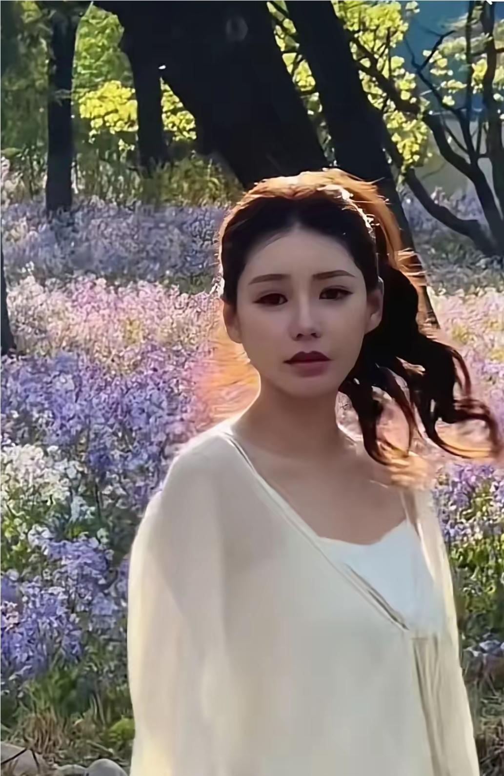 从图片中看出,马筱梅精心打扮了一番,画了精致妆容,扎着高马尾,穿着黄色薄纱衣服,漫步在紫色花海中,花漂亮,人更漂亮,看来她又要出来打拼事业了。