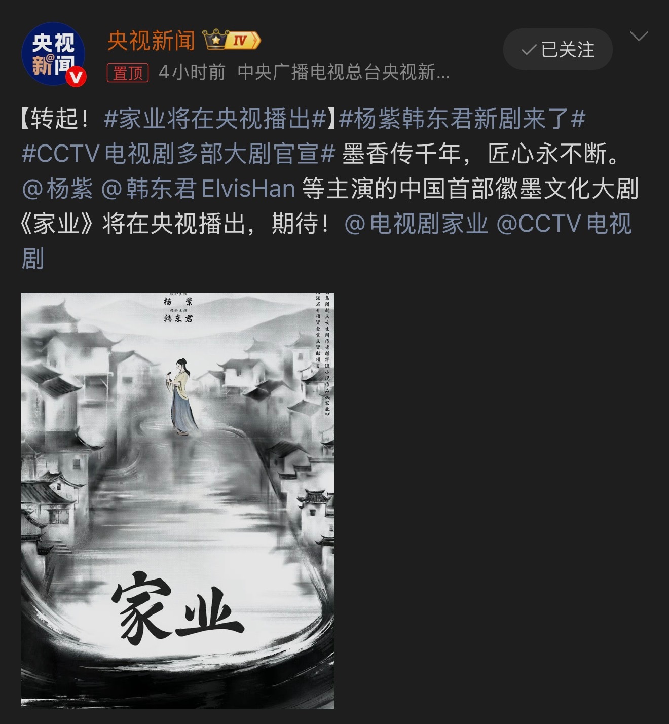 家业将在央视播出期待家业,期待杨紫李祯