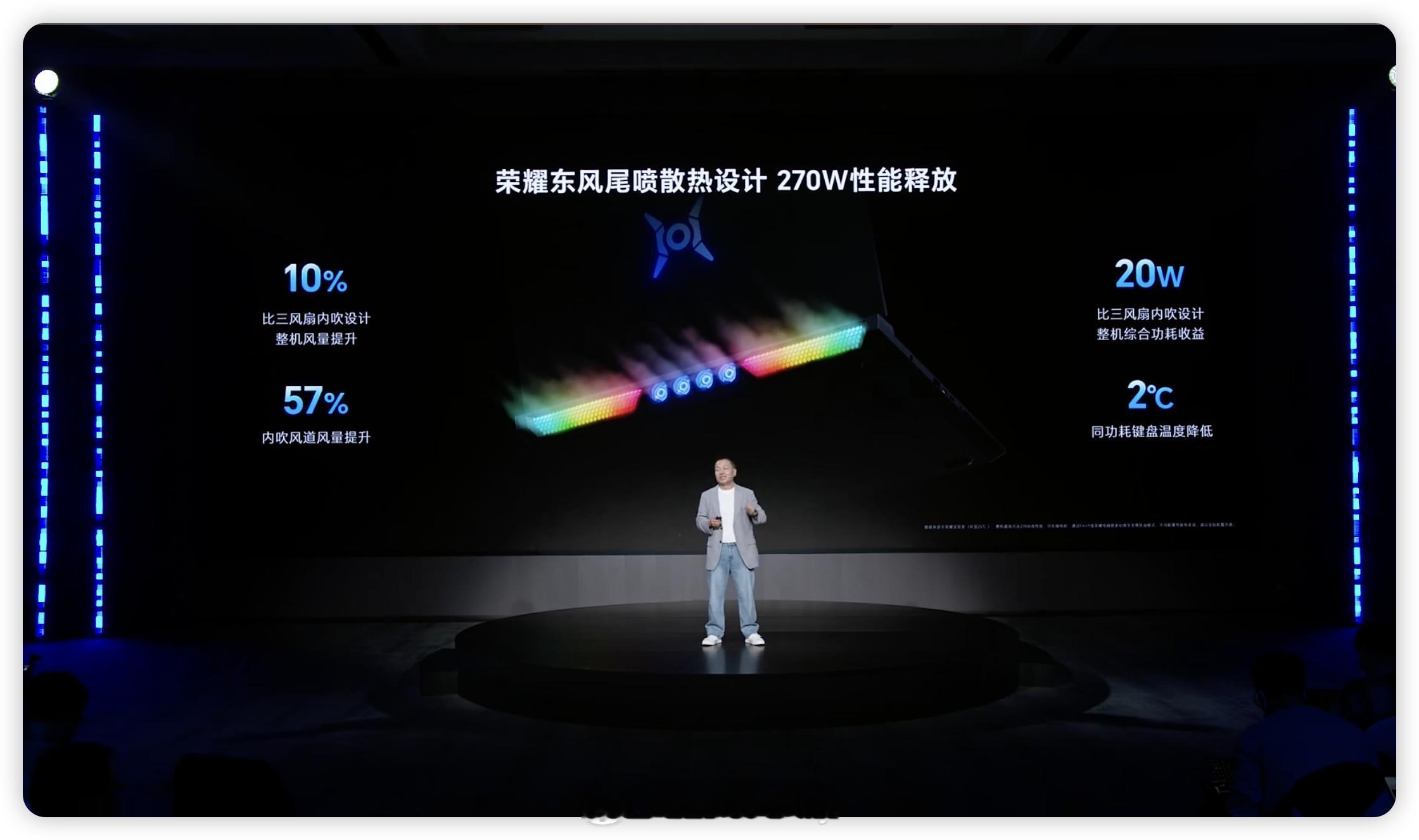 荣耀调校为王!不靠吹啊,而是真有实力,荣耀东风尾喷散热引擎,270W性能释放,散热到位性能才能飞起啊。