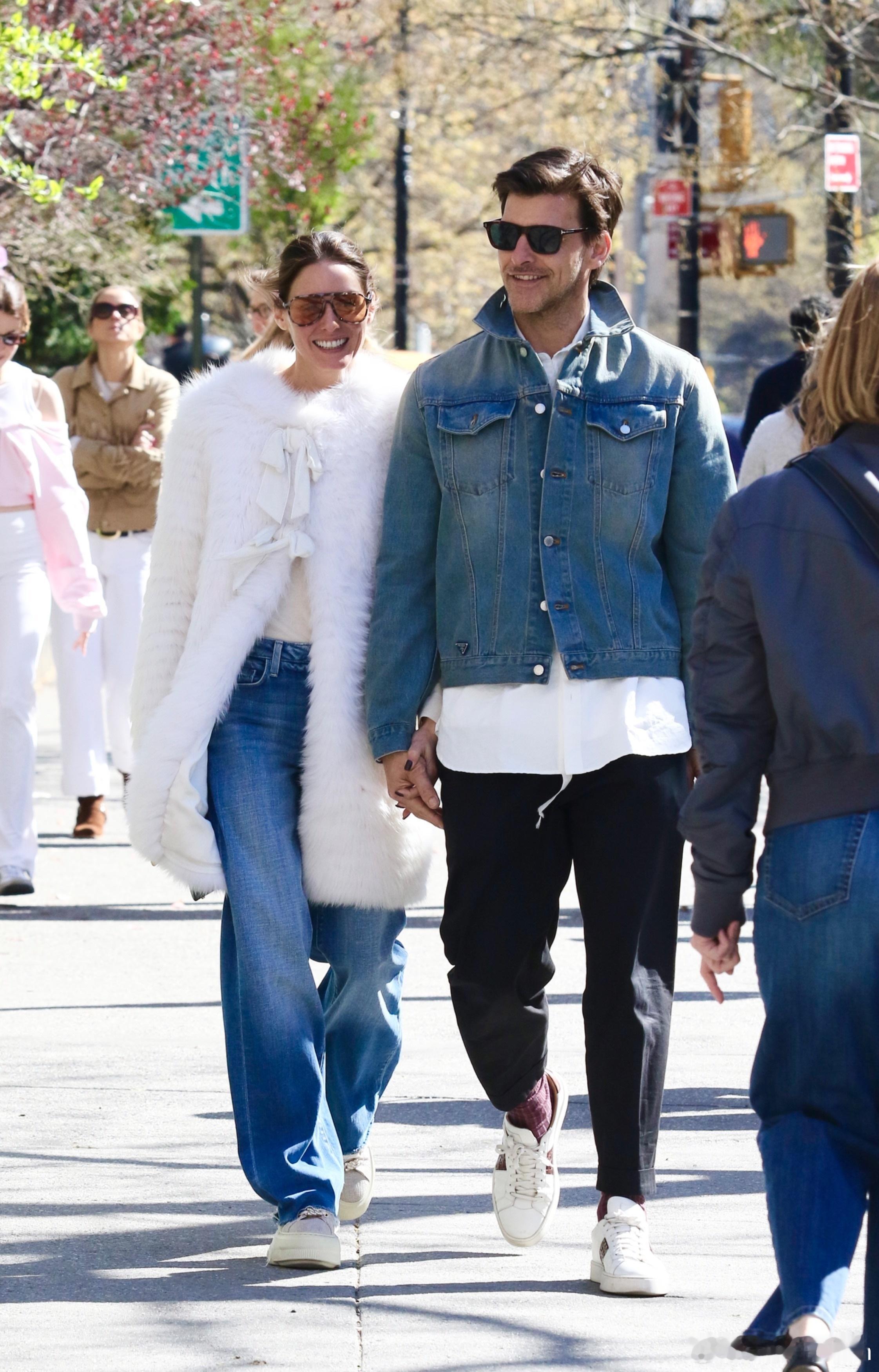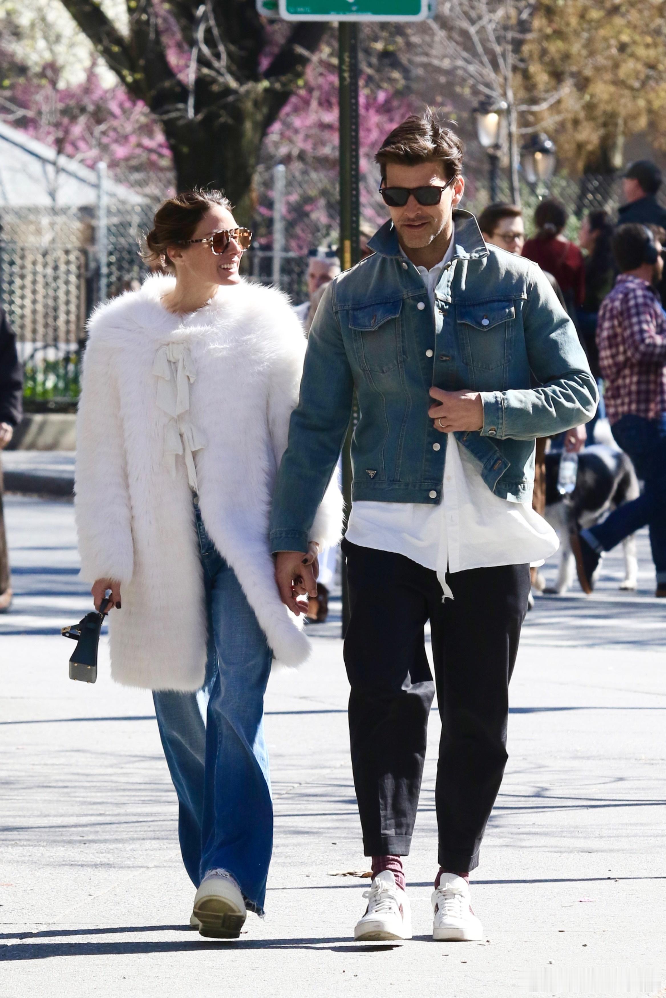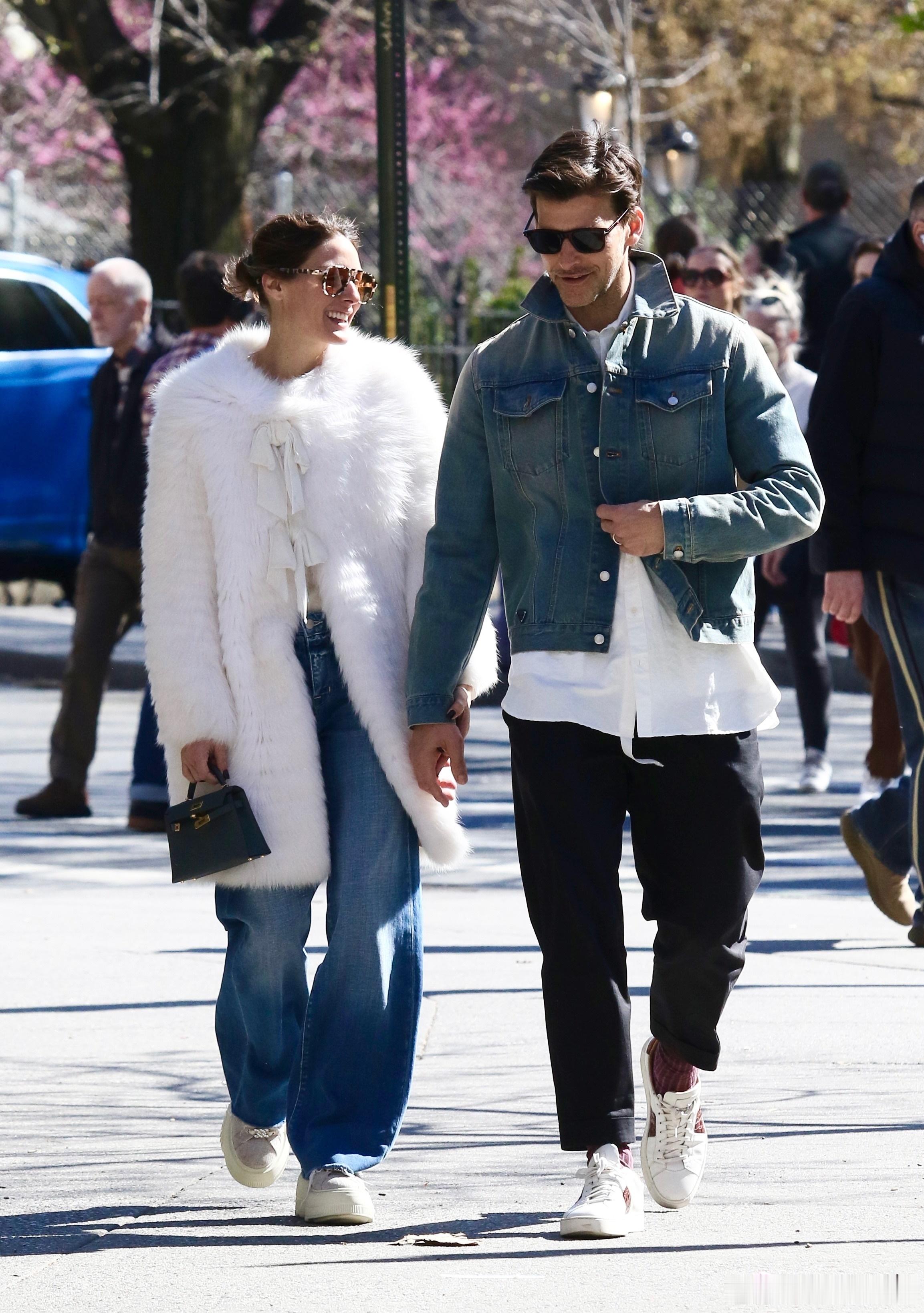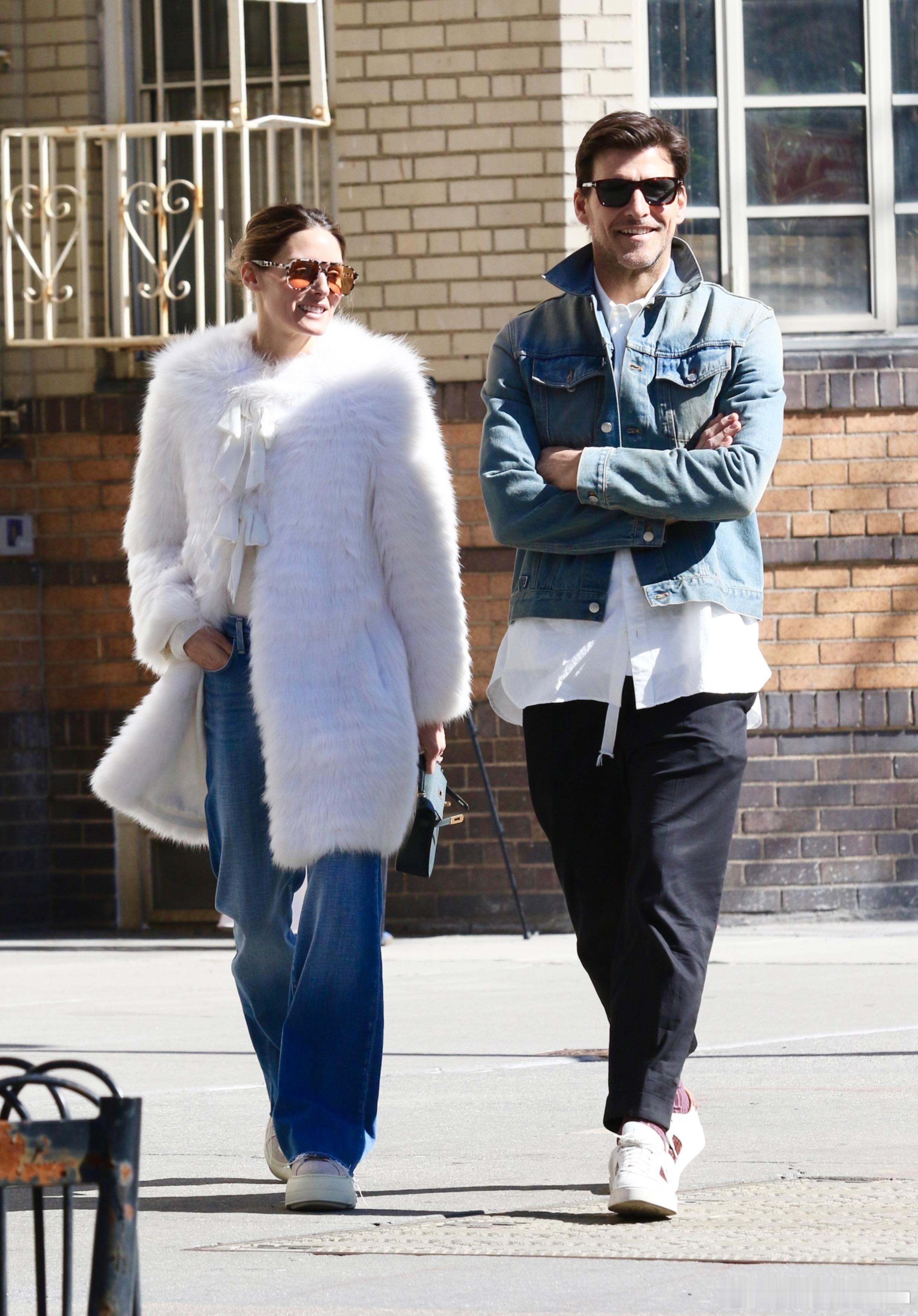 Olivia Palermo奥利维亚巴勒莫和老公Johannes Huebl约翰内斯徐贝尔在纽约外出散步,散一半两口子还旁若无人地腻歪亲吻起来