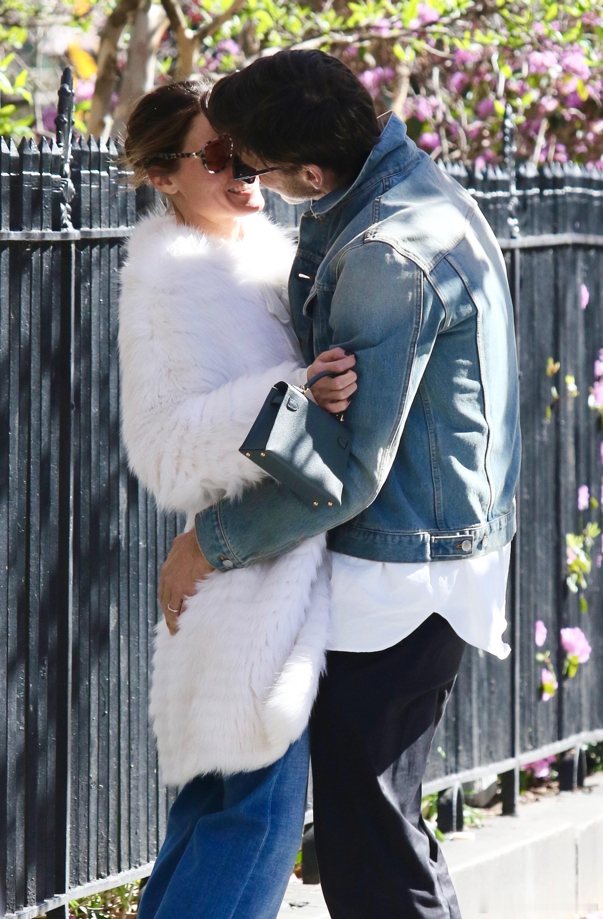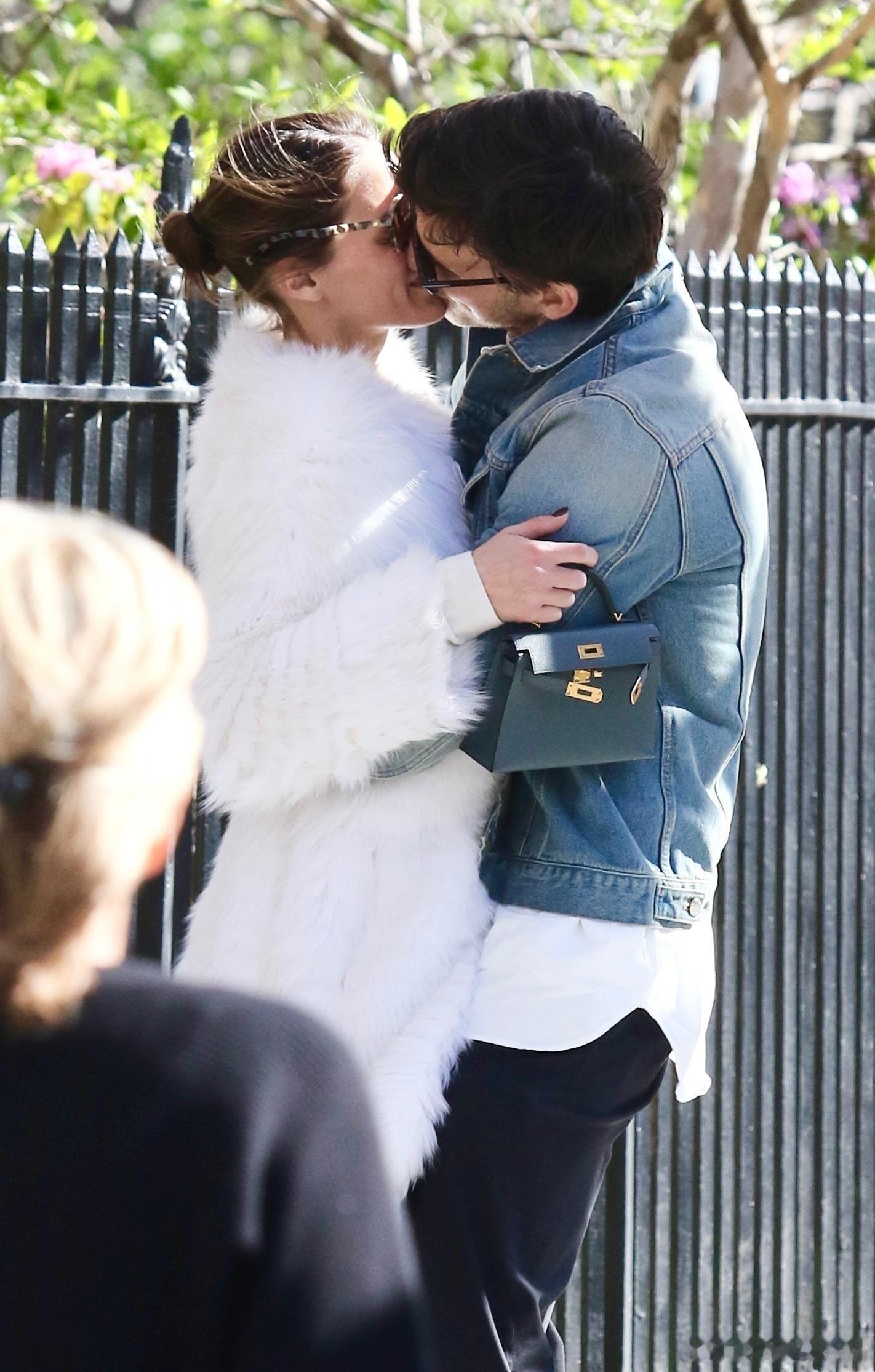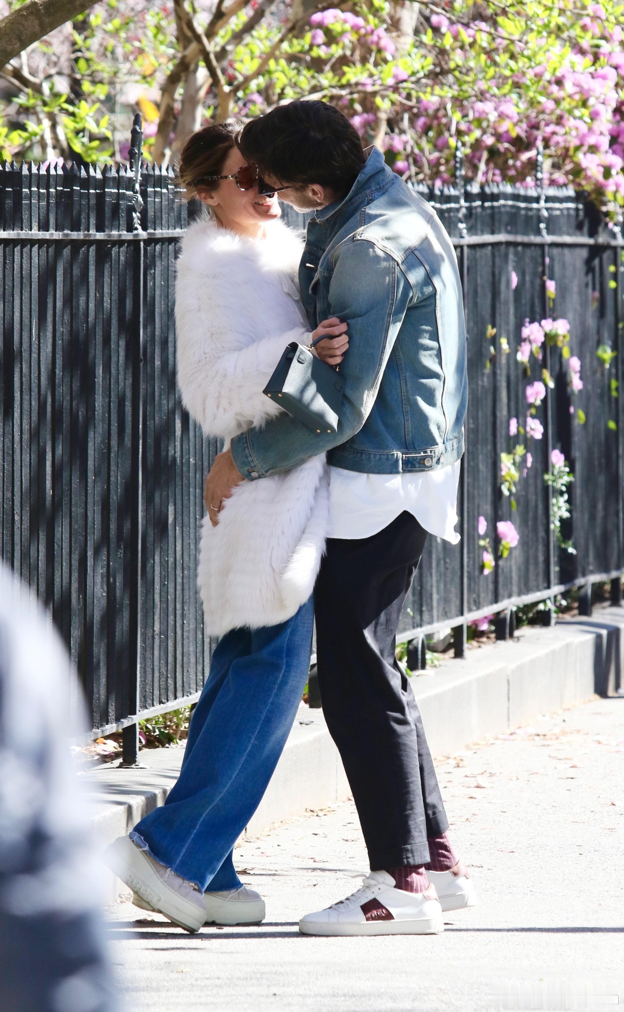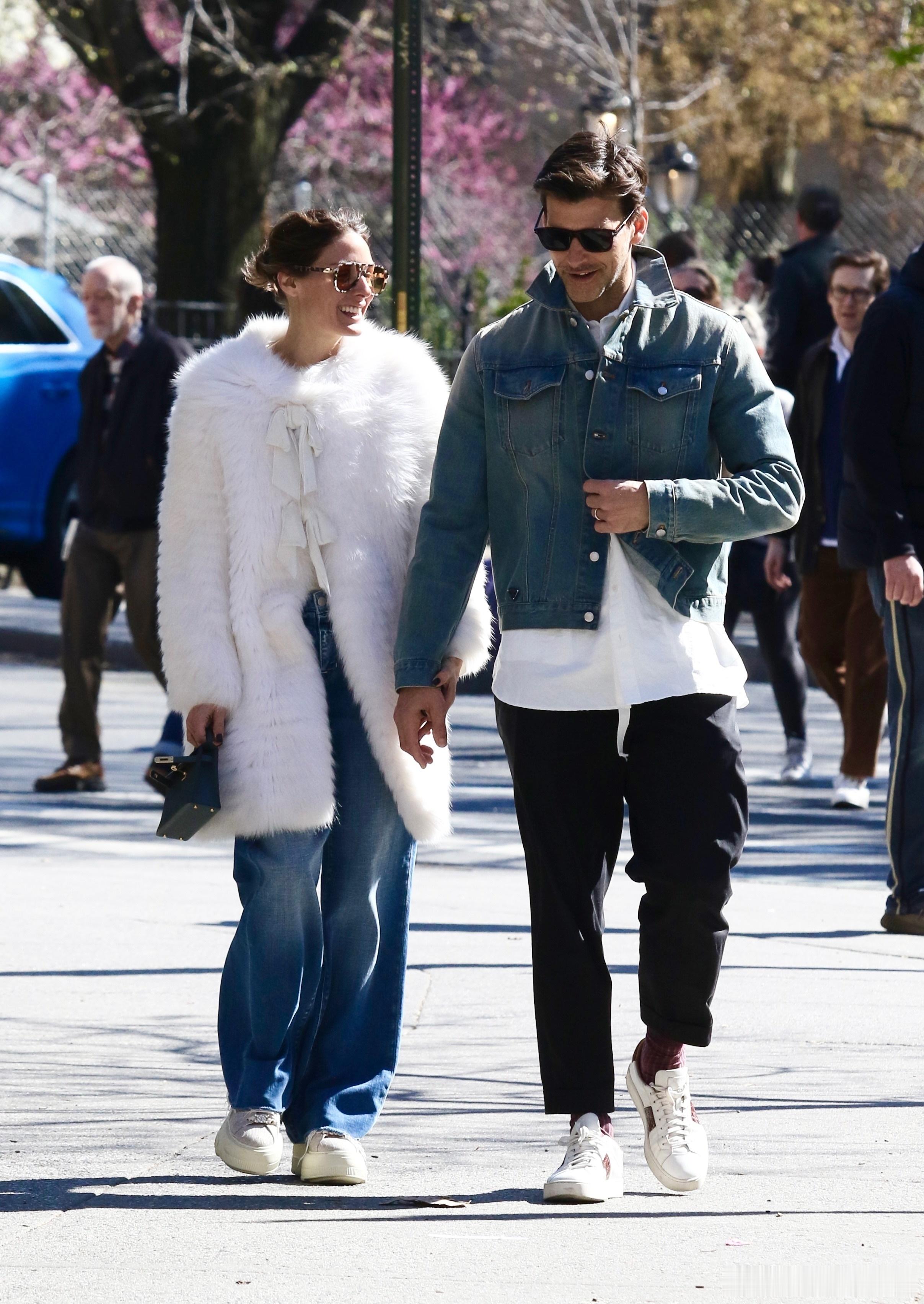 Olivia Palermo奥利维亚巴勒莫和老公Johannes Huebl约翰内斯徐贝尔在纽约外出散步,散一半两口子还旁若无人地腻歪亲吻起来