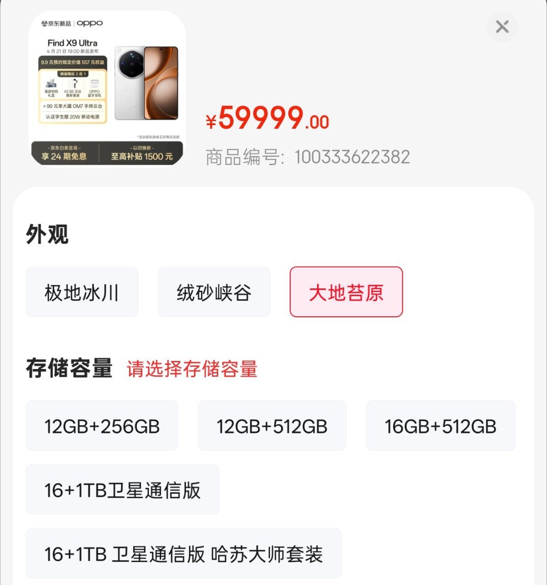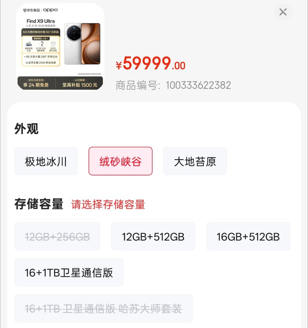刚去线下门店摸了一下X9U,只有苔原,毕竟主打色。其他两个颜色还没给出来样机,系统也还是锁定的只能先看外观。然后突然发现,通过京东预约界面是不是可以先看到这次的SKU。大地苔原全版本都有,大师套装也是独占的;冰川是除了大师套装其他几个组合都有,1T都是卫星版;峡谷没有256G,只有12+512G和16+512/1T ?