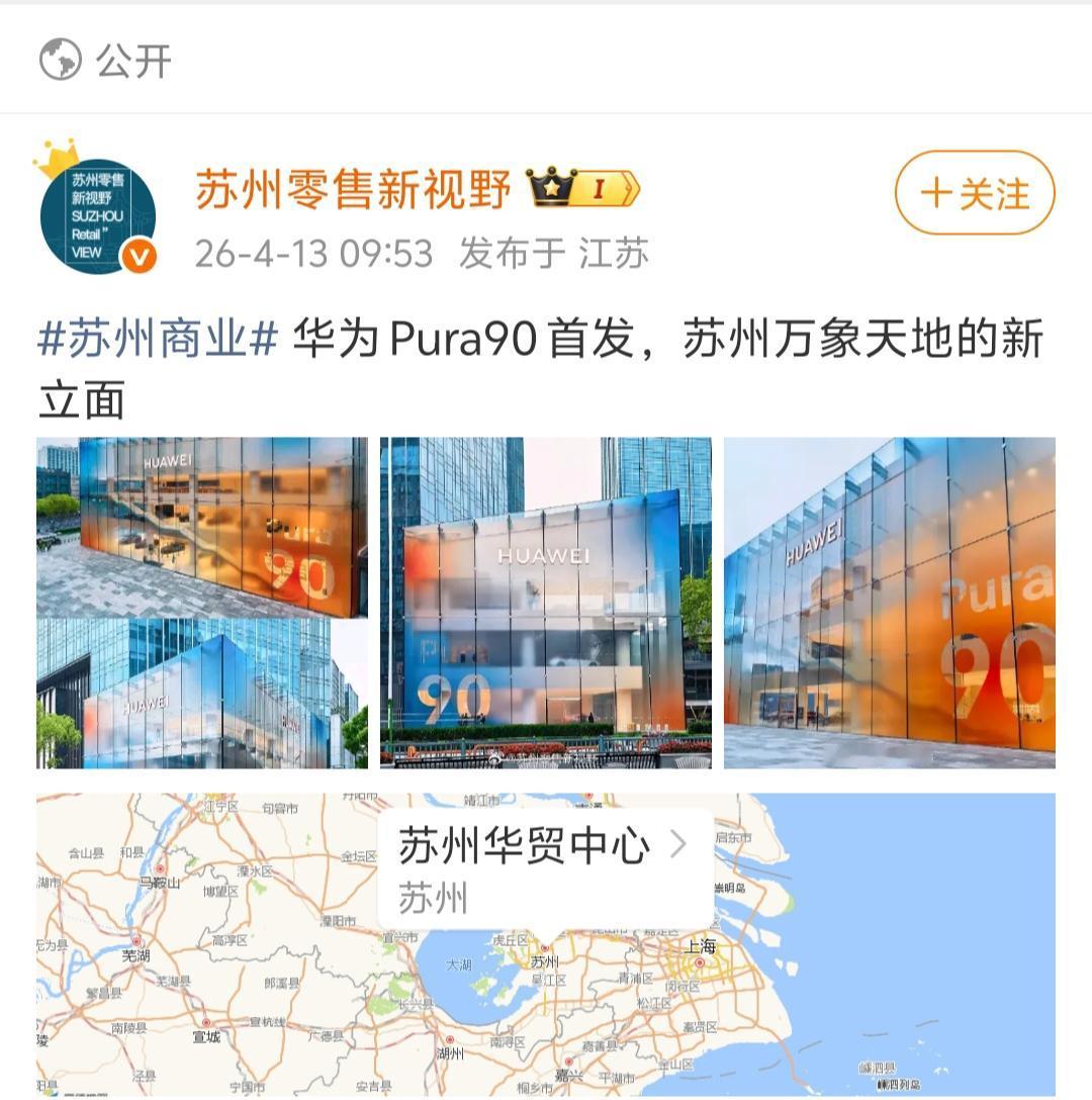 此前,“橘子海”刚官宣,便有上百家全国各地方的文旅账号和知名大学官微齐刷刷赶到华为终端评论区打卡,推介自己当地和Pura90“橘子海”的同款晚霞。现在,华为又直接把苏州华为门店的整栋玻璃幕墙换成了和新机同款的橘子海渐变立面,终端CEO何刚还亲自下场晒图,放话“喜欢就给更多门店安排”,这波操作哪里是卖手机,分明是把产品美学做成了城市级的视觉符号。