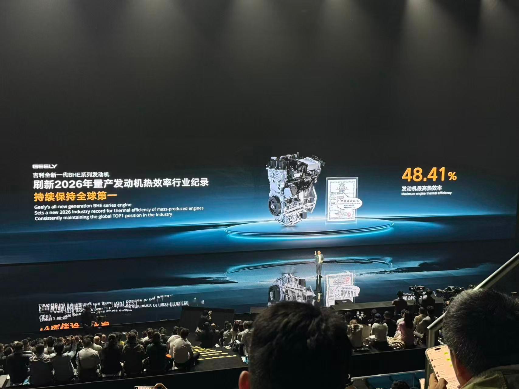 吉利i-HEV智擎混动全新一代BHE系列发动机最高热效率达到了48.41%体现在