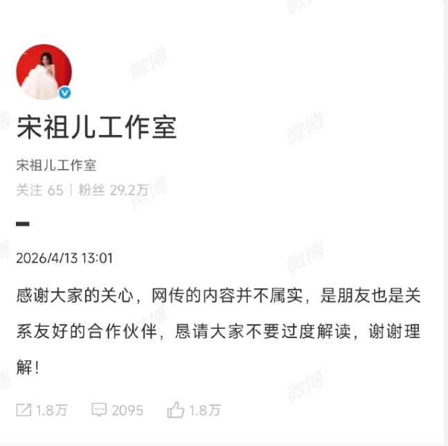 宋祖儿工作室否认和刘宇宁恋情!
