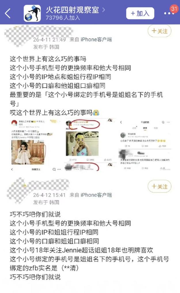 昨天疑似宋祖儿小号被扒,这个账号多次与宋祖儿IP地址相同,闲鱼账号也高度吻合,账号绑定手机号和支付宝账号都是孙凡清(宋祖儿真名),这个账号是阮经天大粉,关注了宋祖儿和刘宇宁CP超话,看过刘宇宁直播,所以被怀疑是宋祖儿小号,宋祖儿前几年和阮经天传过绯闻,不过后来俩人也辟谣过恋情,作为舆论的另一个当事人,刘宇宁竟然还没有出来直播辟谣恋情,而且宋祖儿工作室否认了恋情,没否认小号是宋祖儿的,宋祖儿刘宇宁《折腰》之前就认识了,2022年一块录了《开始推理吧》,俩人都是常驻嘉宾。