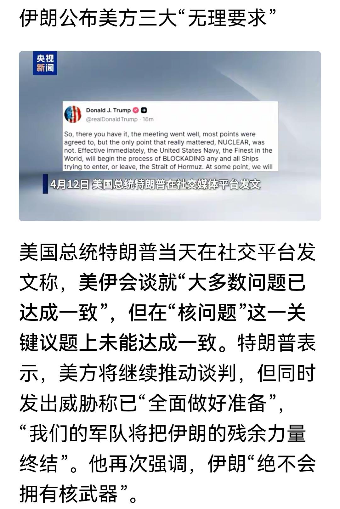 美国三大无理要求,伊朗也是不明事理,浓缩铀问题,不就是美以挑起战争的理由嘛!在这