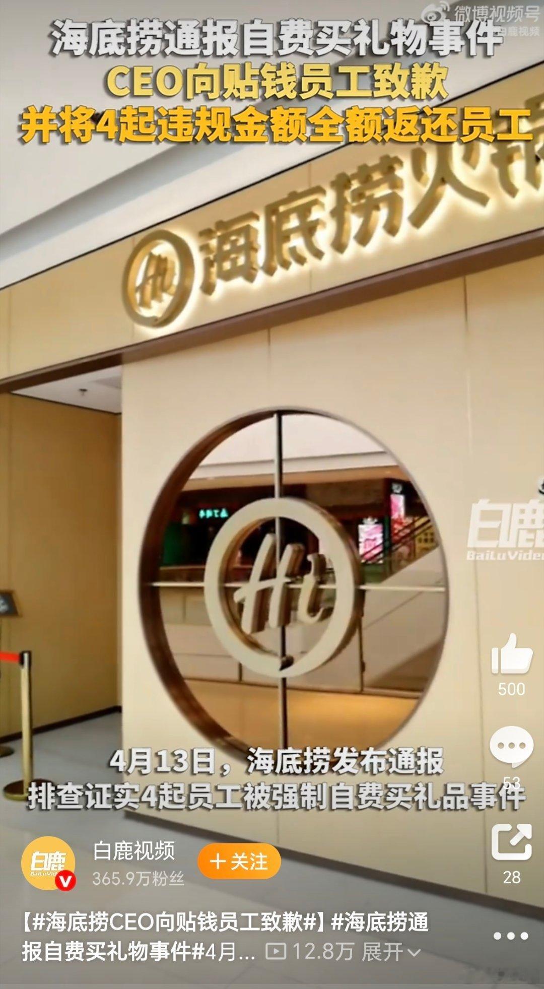 海底捞CEO向贴钱员工致歉如果海底捞的“好服务”是建立在让员工自掏腰包购买礼品给顾客的基础上,这种“好服务”不要也罢。