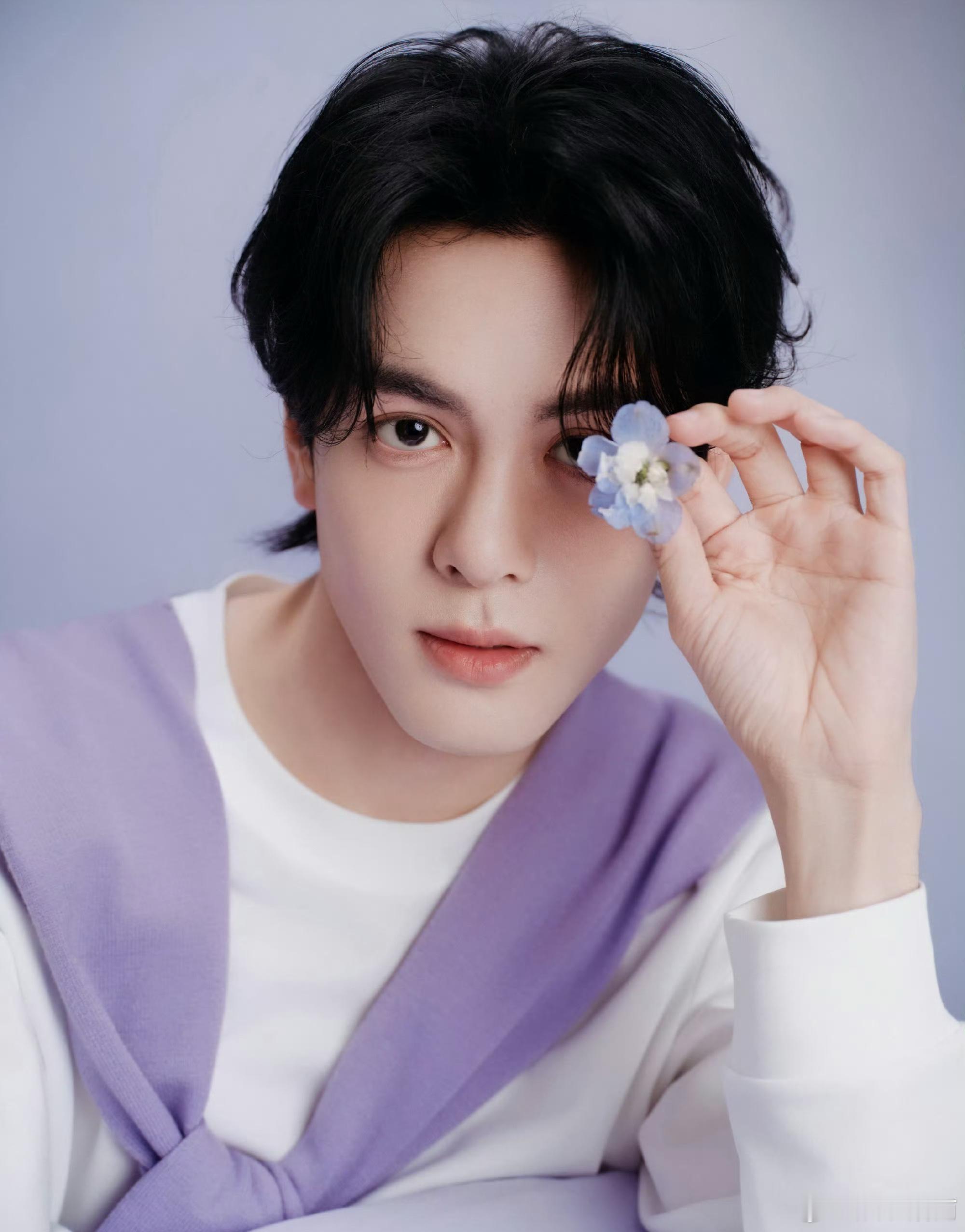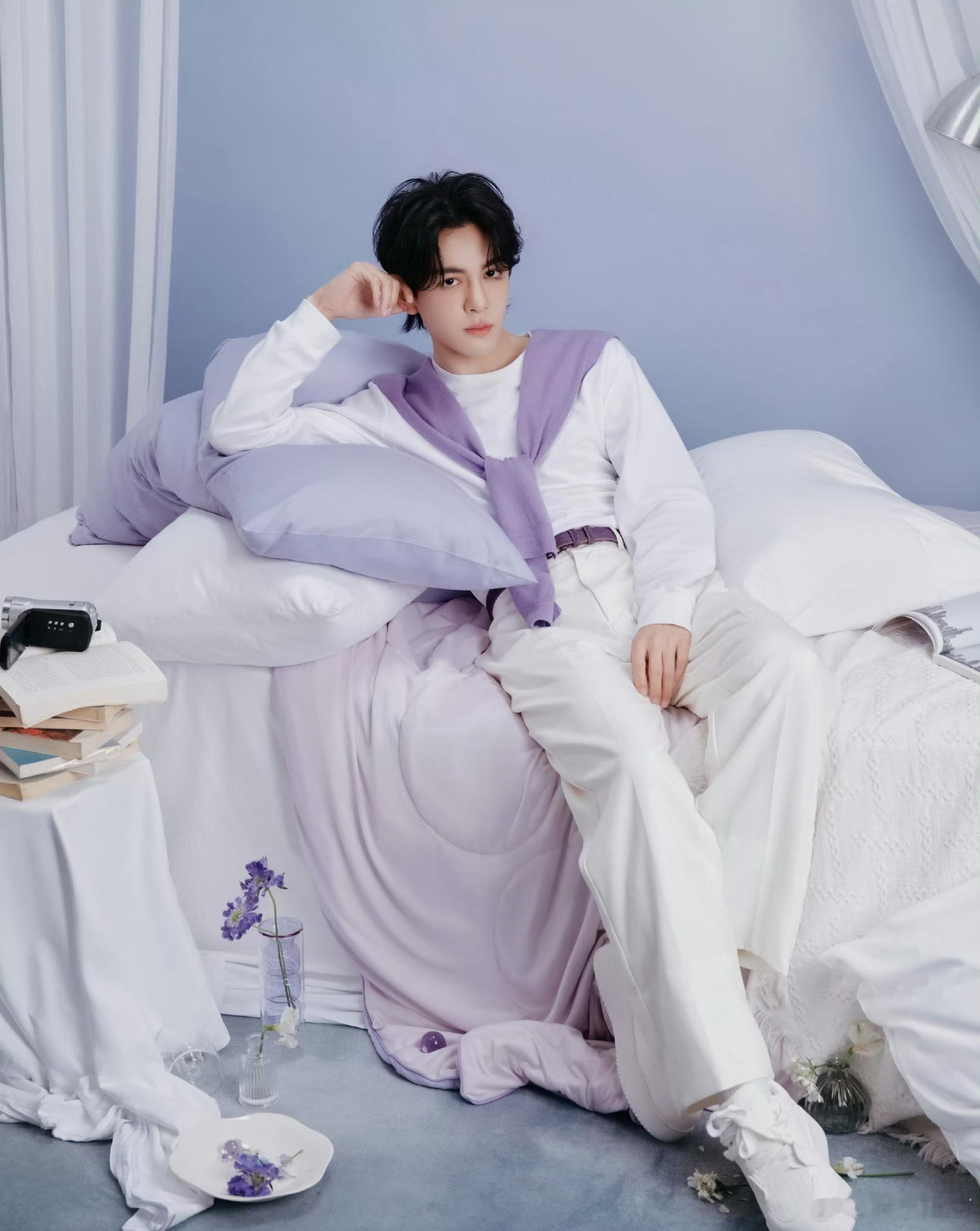 曾舜晞品牌直播造型出发图,紫色披肩好男大啊,清爽大帅哥