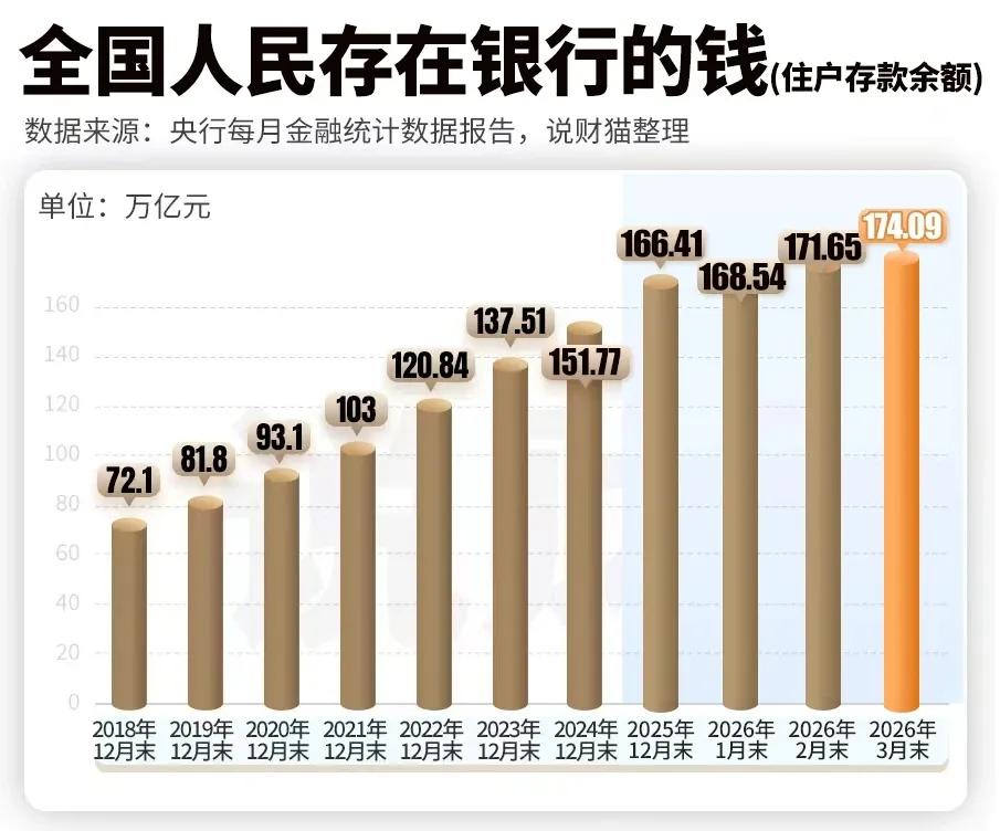 说好的加仓猛干,转头却把钱存银行。央妈公布最新实情,银行存款又创了新高,截止3季末,银行住户存款余额174.09万亿,再次刷新史高,同比去年一年多了2.44万亿。怪不得生意不景气,原来有钱人都悄悄把钱存银行了。