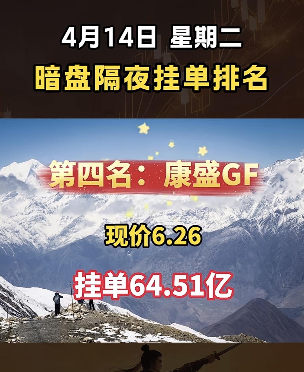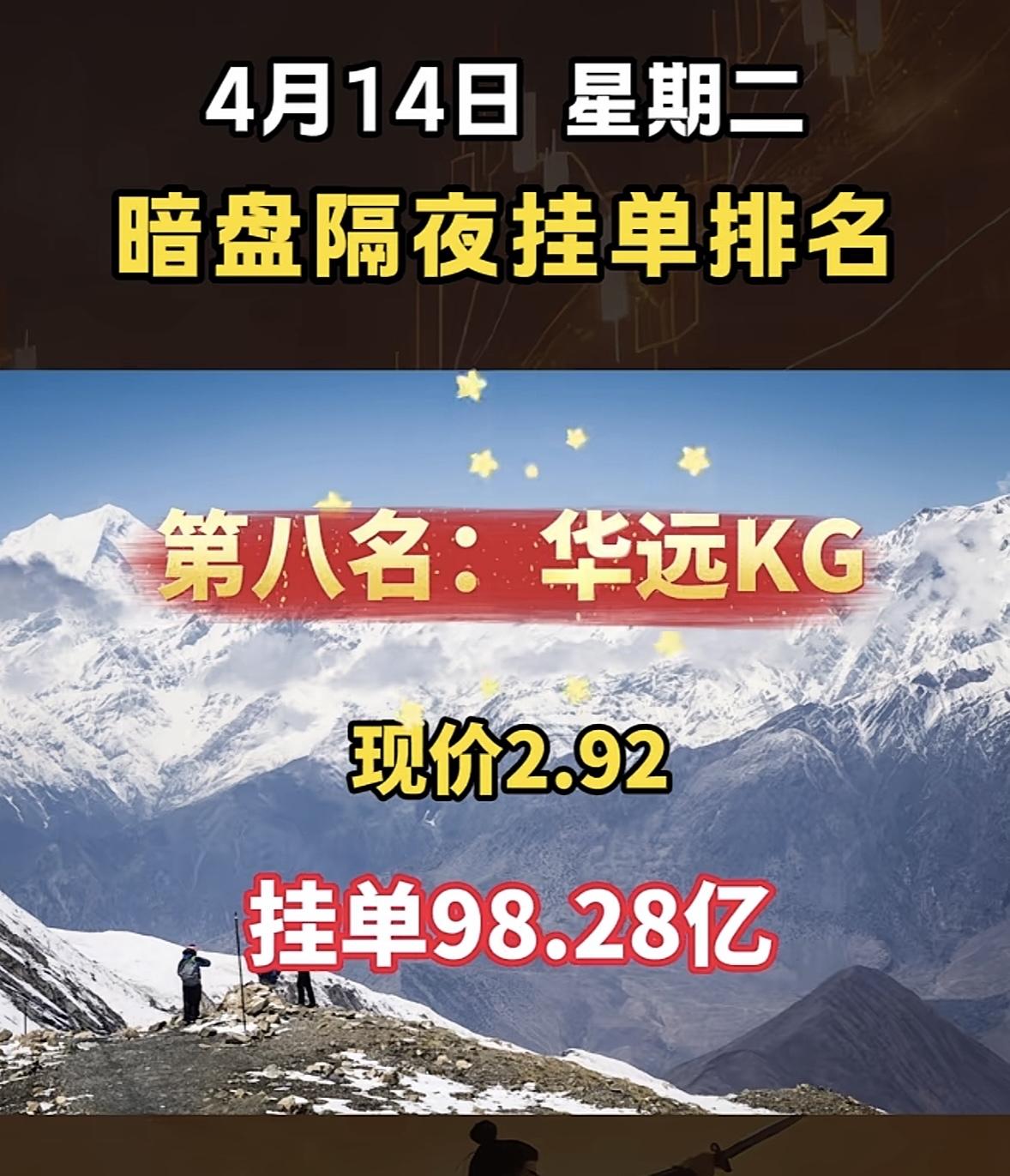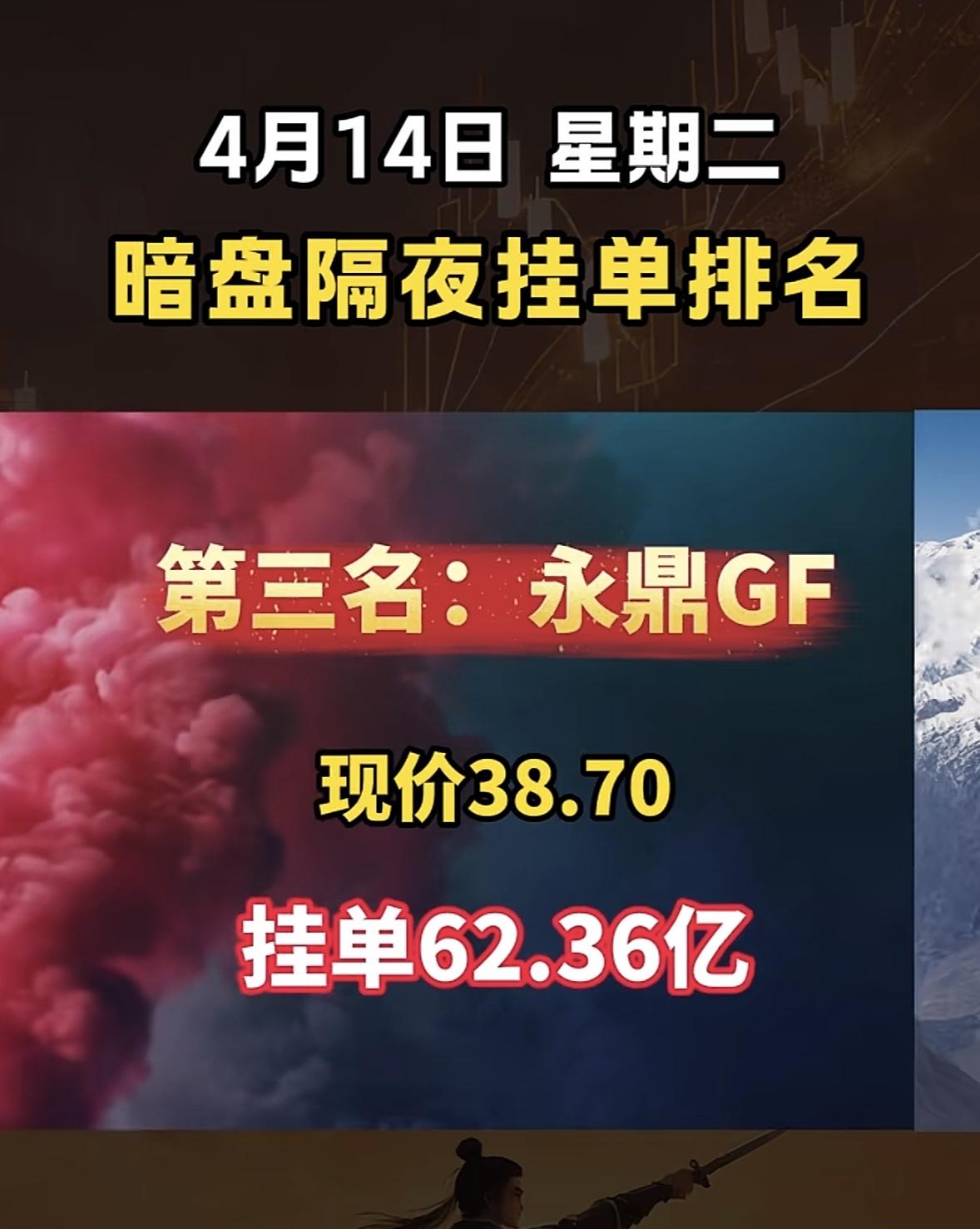 4月14日周二暗盘隔夜挂单排行榜出炉