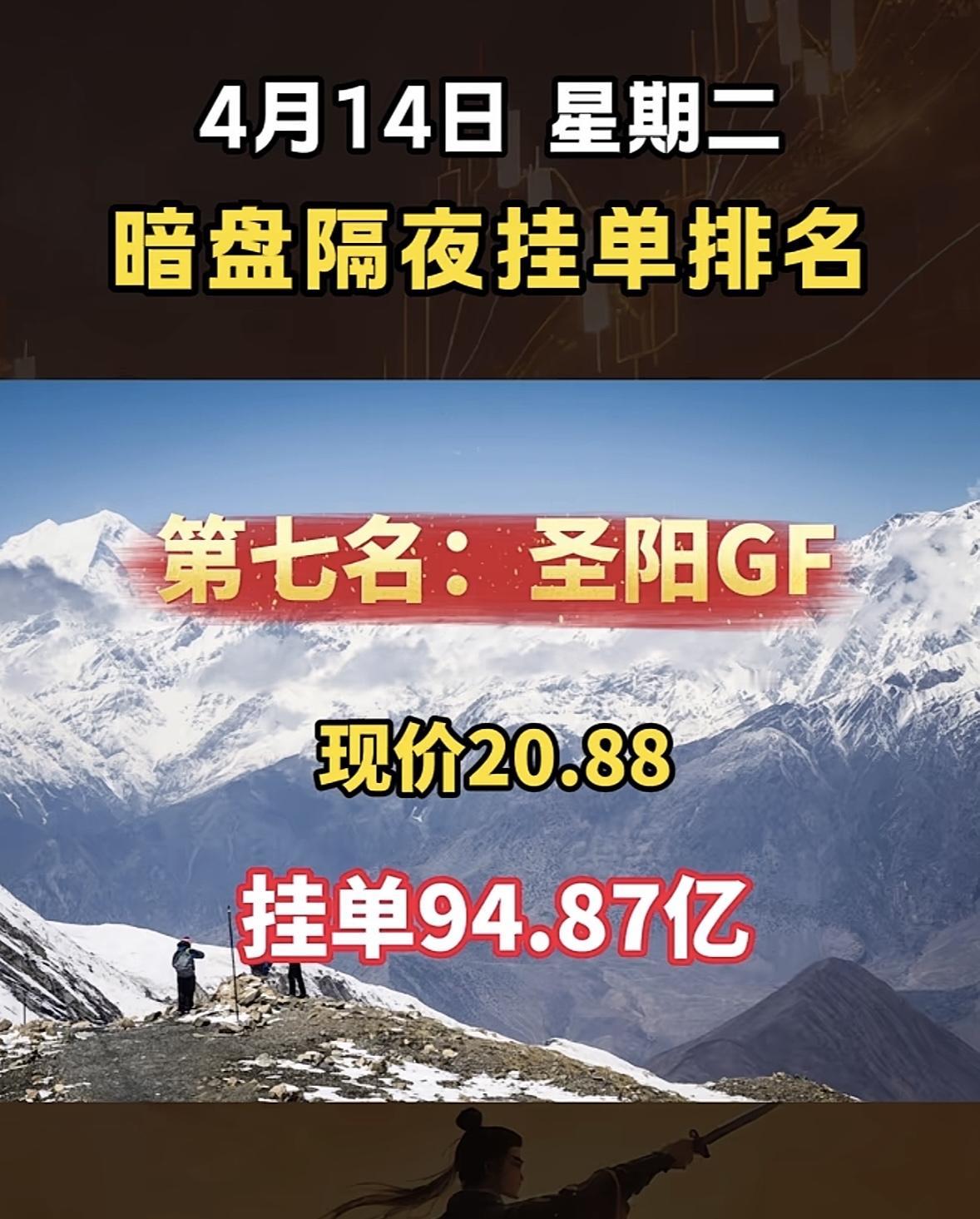 4月14日周二暗盘隔夜挂单排行榜出炉 4月14日暗盘隔夜挂单排行里,圣阳股份排