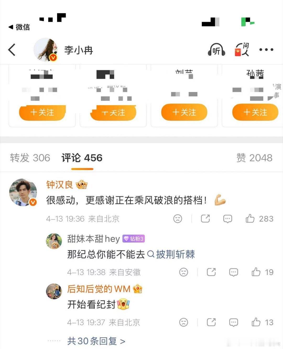 李小冉给钟汉良新剧打call钟汉良回应李小冉 蜜语纪李小冉给钟汉良新剧《蜜语纪》应援,钟汉良暖心回复 。回忆杀来袭,到如今这份情谊太好磕了