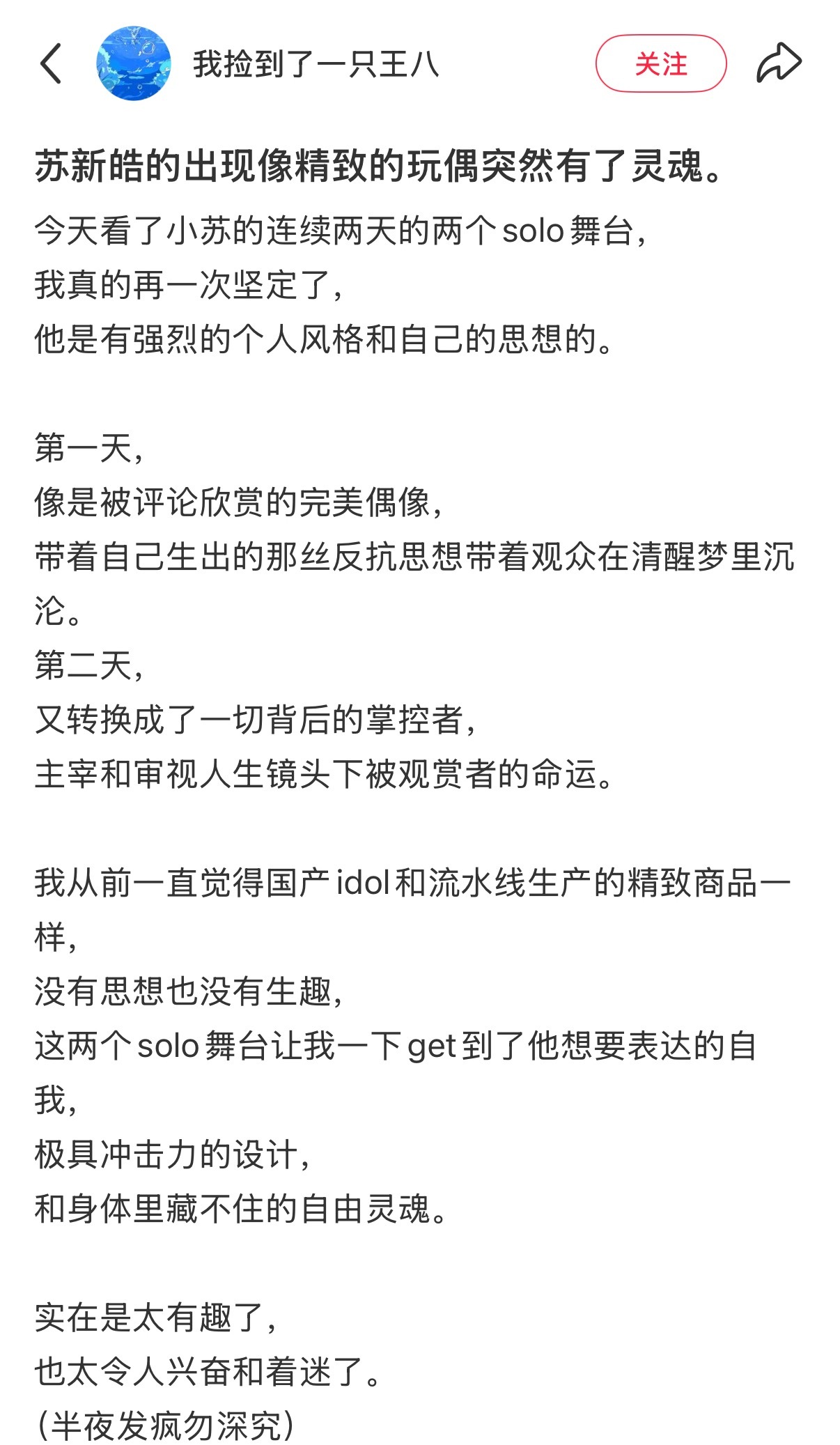 持续收集苏新皓solo舞台解读中,期待一篇深度分析 plq也欢迎分享大家的想法🤲