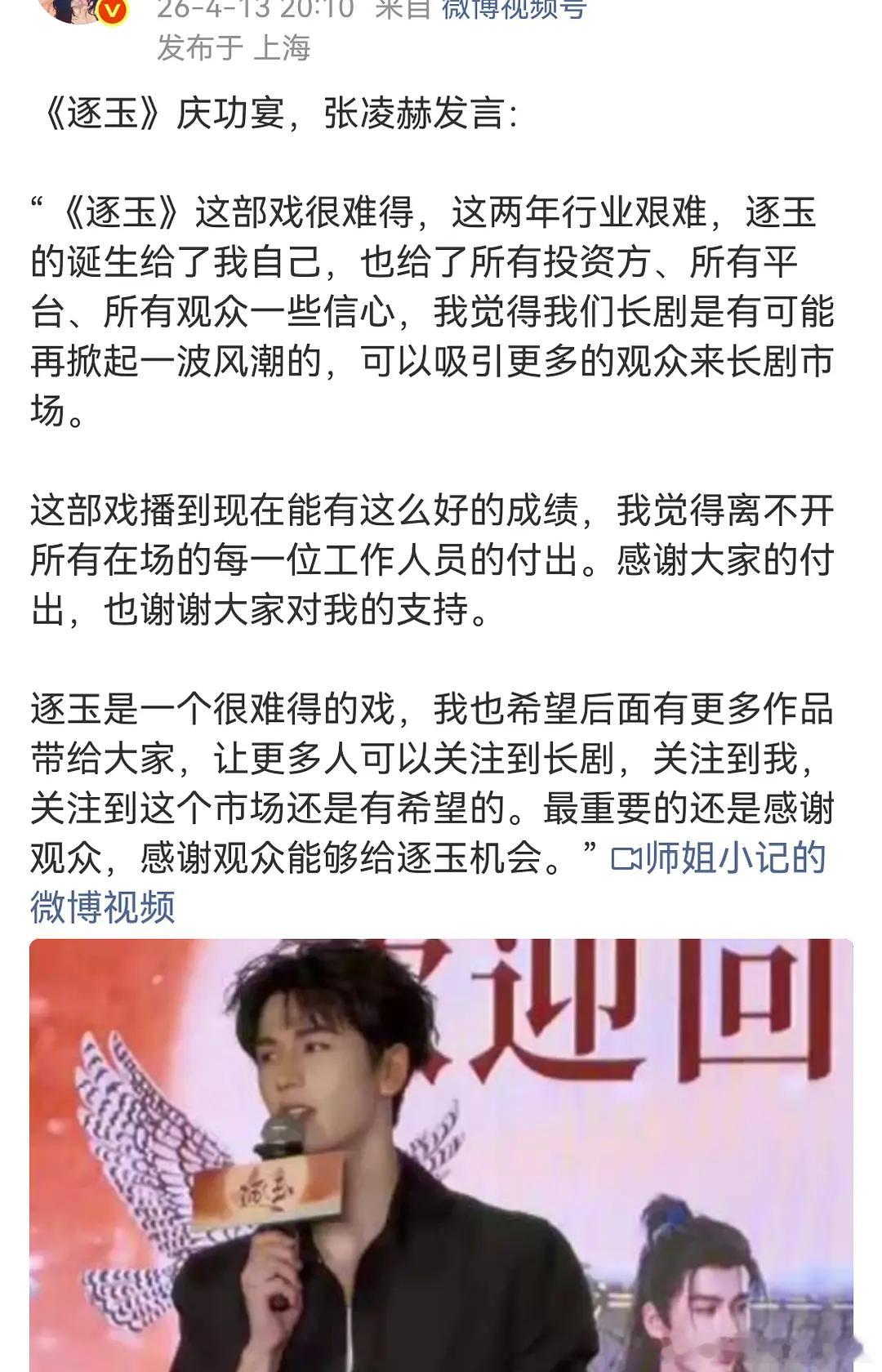 张凌赫在逐玉庆功宴发言,《逐玉》算得上拯救长剧市场吗?张凌赫逐玉庆功宴发言 逐玉