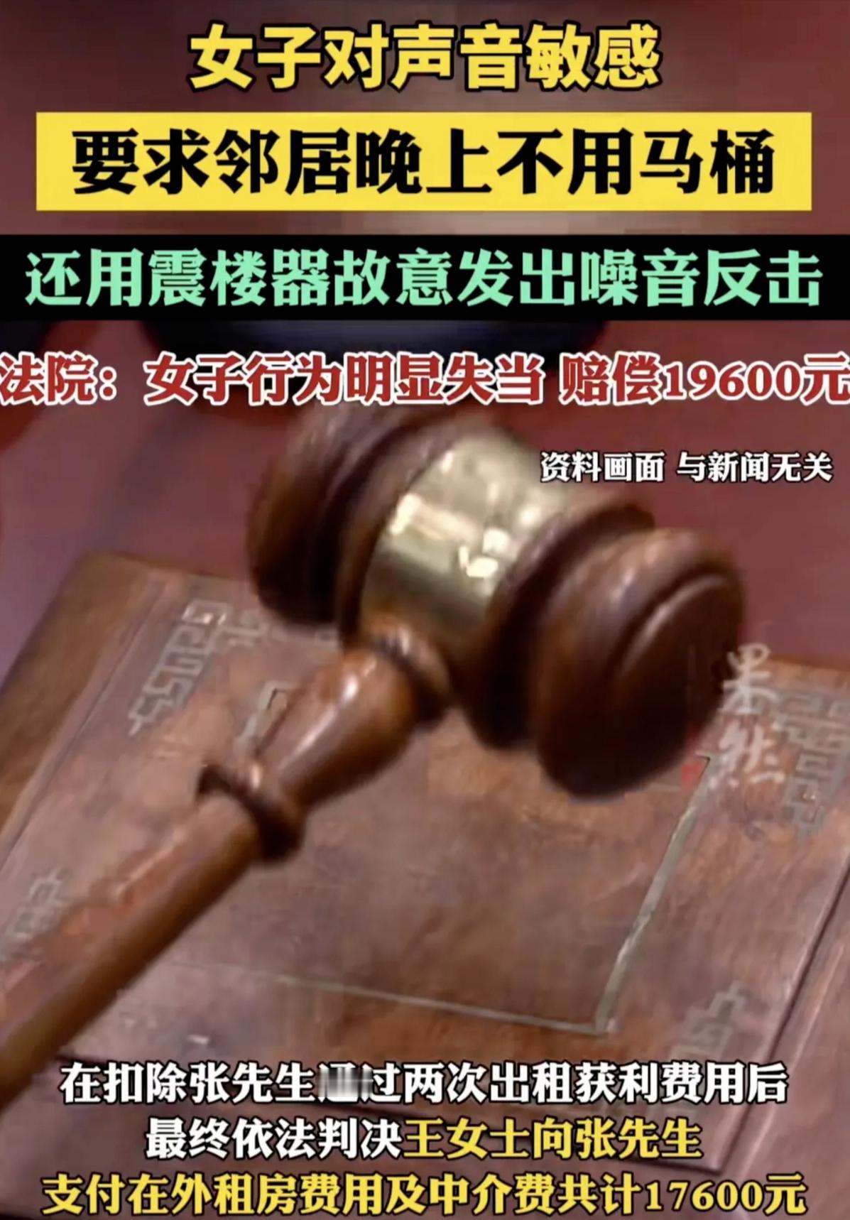 信息来源:女子要求邻居晚10点后不准用马桶,邻居无奈搬家后起诉!法院判了——法制日报