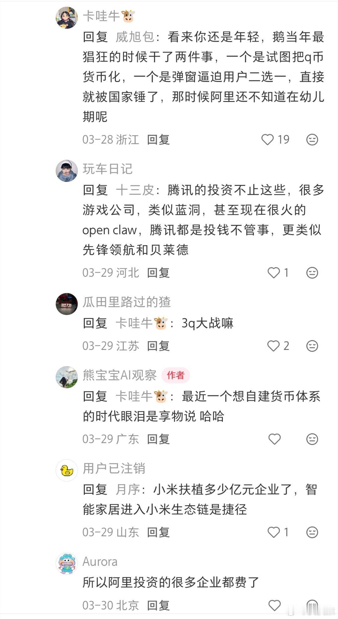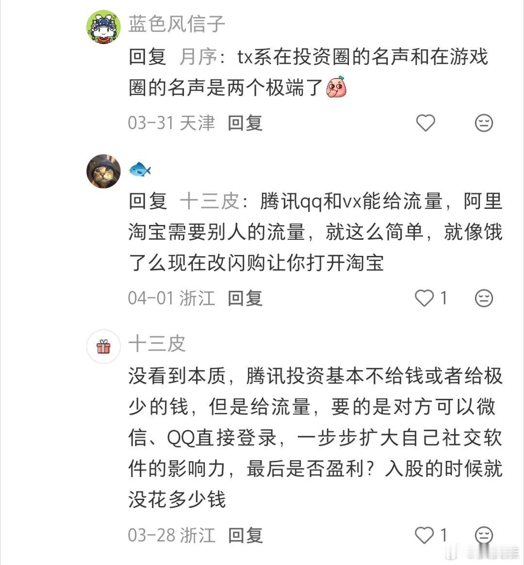网友评论阿里、腾讯、小米三家企业投资的差异:阿里投资是全面控制,纳入版图;腾讯投